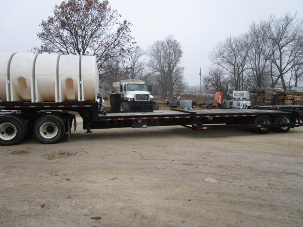 1991 Trailmobile Drop Deck Trailer (ED775), Model F70T-6JEA, 1500 gallon poly tank, outriggers, tandem air ride suspension, 42' length.