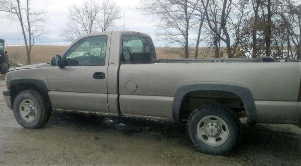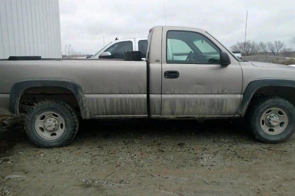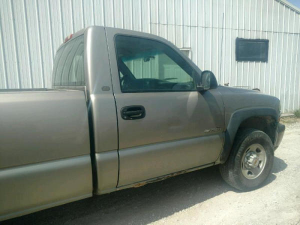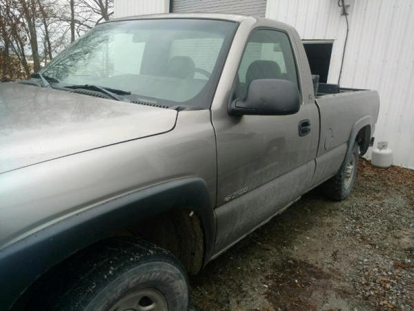 2001 Chevy C2500 Silverado (ED773), 2 WD, working heat/AC, radio, cruise, DMI shock hitch, tires are LT245/75R16 at 50% tread, crack in the windshield, good working truck, shows 200,150 miles.