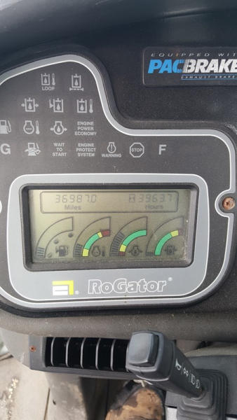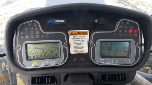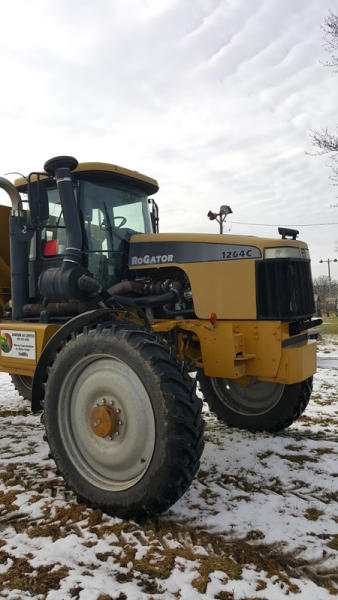 2005 1264C Rogator (PD1113), C9 Caterpillar engine, cold AC, AM/FM radio, Raven Viper Pro rate controller with GPS guidance and external light bar, New Leader L3220 G4 spinner bed, hydraulic tread adjust, everything works as it should, field ready, 70% tires, shows 36,987 miles, shows 3963 hours.