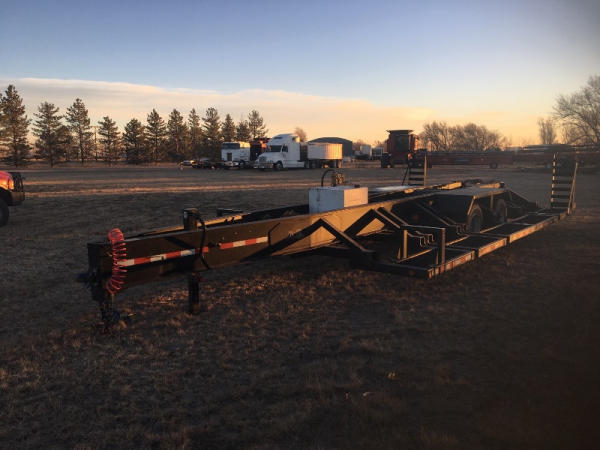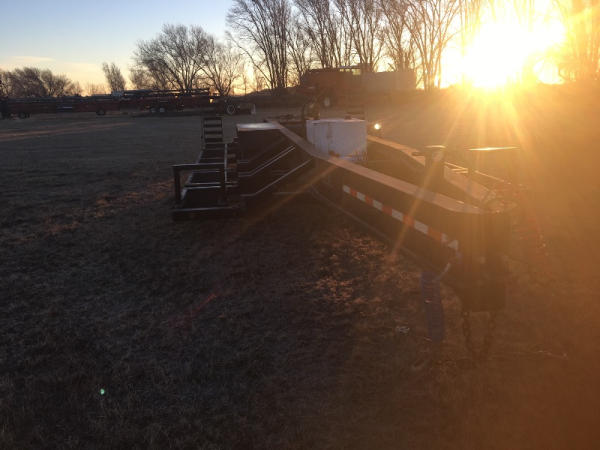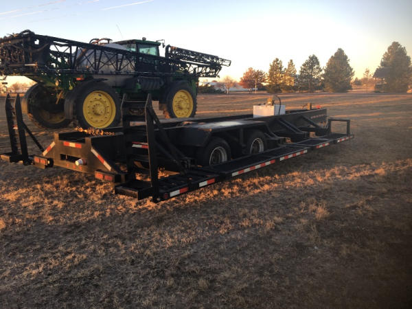 2011 B&B Sprayer Trailer (NP7700), tandem axle, pintle hitch, air brakes, 14,000lb axles, trailer folds to 96" when not hauling a sprayer, trailer is in good conditioning and hasn't been pulled many miles, 235/75R17.5 tires.