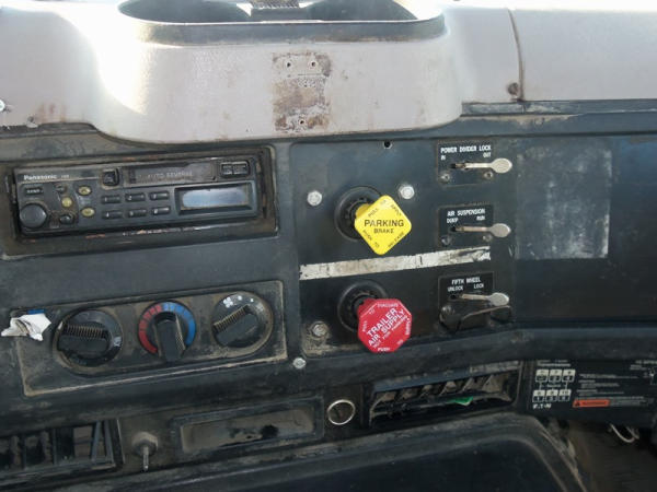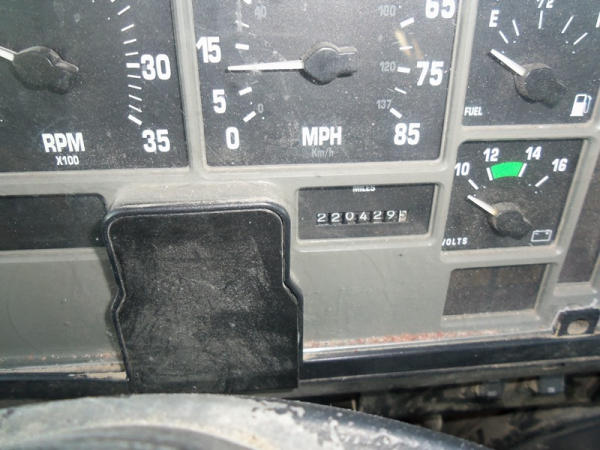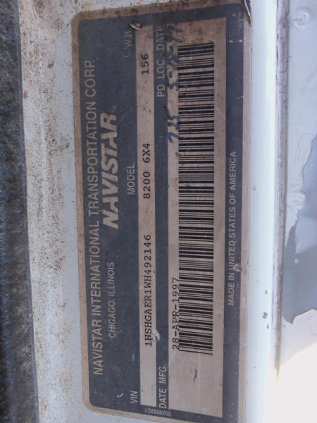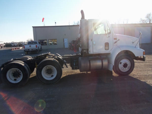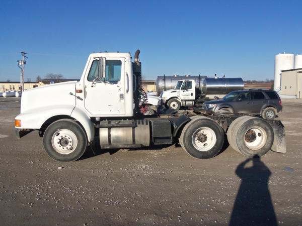 1998 International 8200 Truck (NP7694), DT466 diesel engine, Eaton Fuller 10 speed transmission, heat, Am/Fm radio, tandem axle, air ride suspension, 5th wheel plate, shows 220,429 miles.