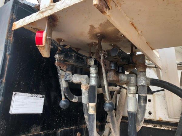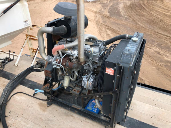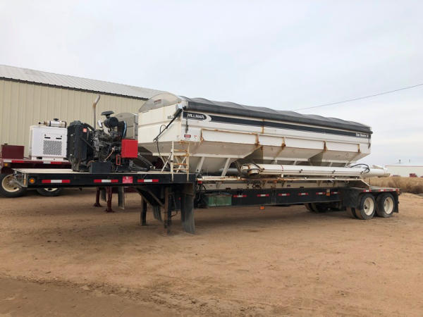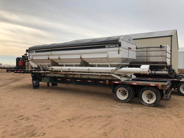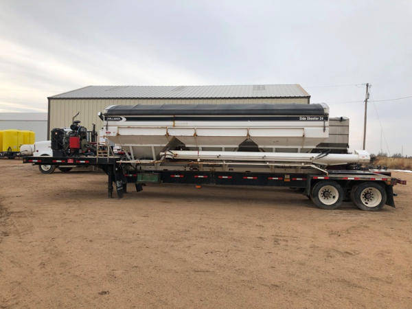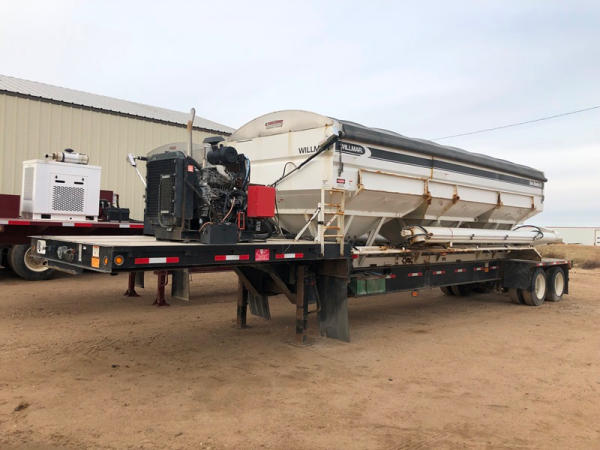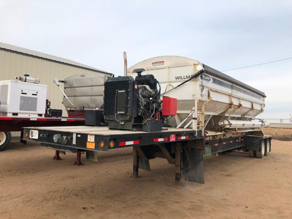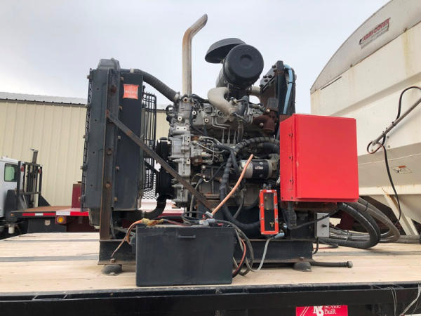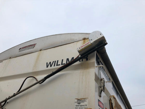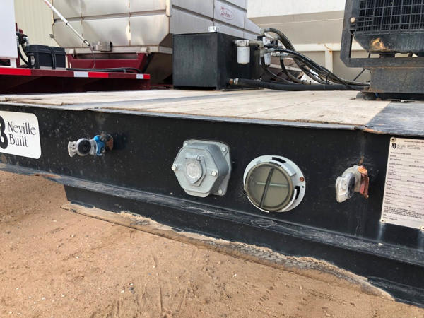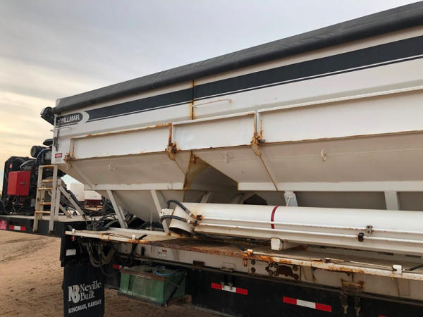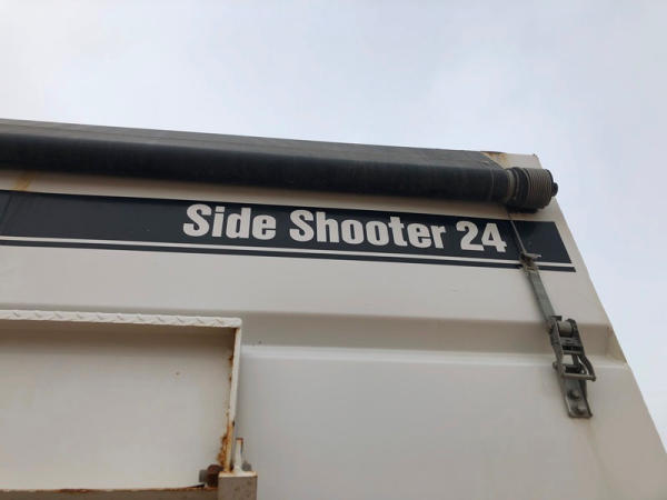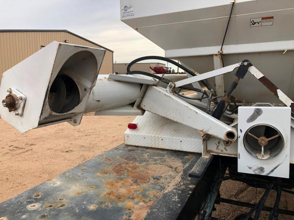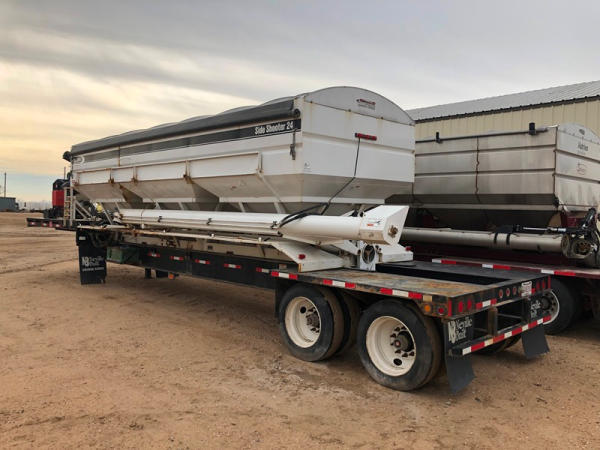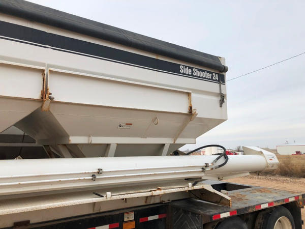 2013 Neville Built Dry Tender Trailer (NP7672, Unit 01335), Willmar Side Shooter 24 dry tender box, side discharge auger, electric roll tarp, all hydraulic, Isuzu diesel engine, electric start control panel, Neville Built sprayer trailer, tandem axle, spring suspension, 255/70R22.5 tires, GVWR 68,000 lbs.