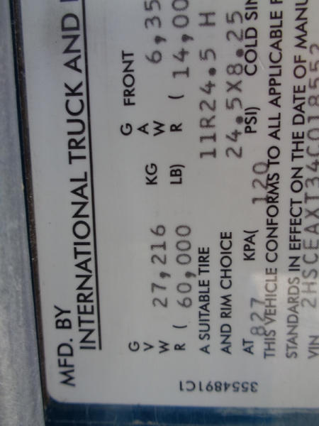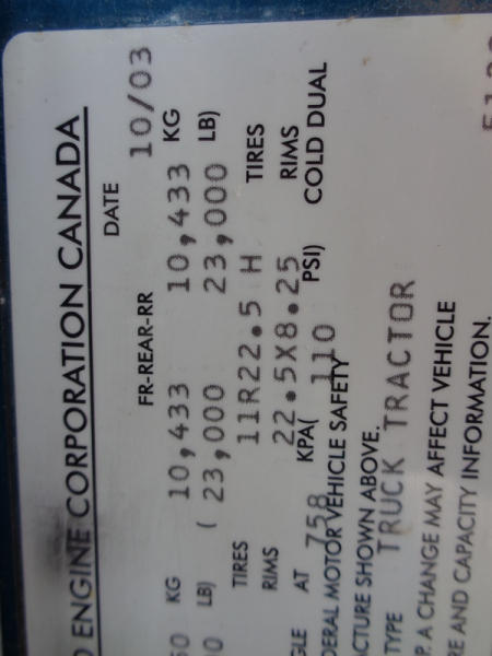 2004 International 9200i Truck (NP7674, Unit 16665), Cat C-12 diesel engine (S/N MBL16050), Eaton Fuller 13 speed transmission, heat, air conditioning, Am/Fm radio, power locks and mirrors, cruise, tandem axle, air ride suspension, Fontaine 5th wheel plate, dual aluminum fuel tanks, 11R24.5 tires, GVWR 60,000lbs, seller believes there to be approx. 464,000 miles.