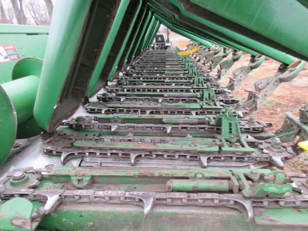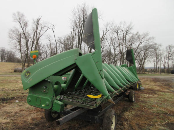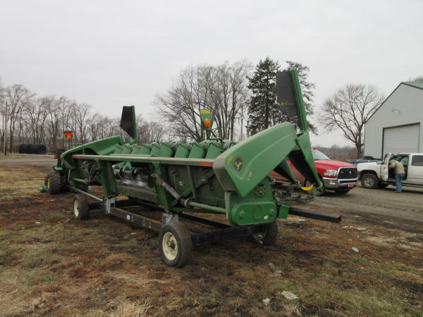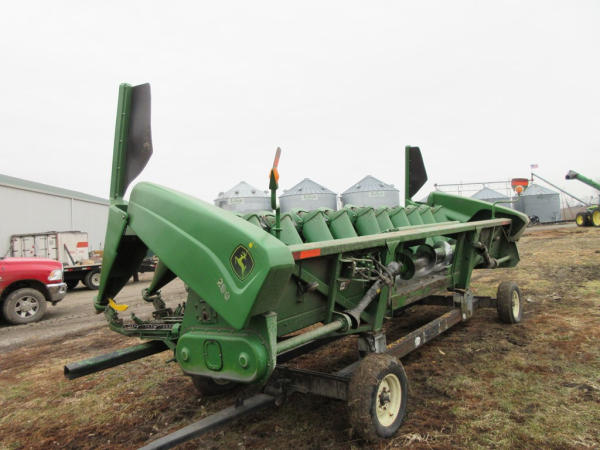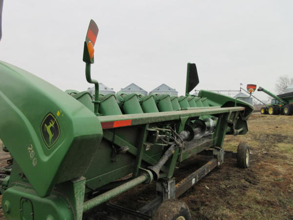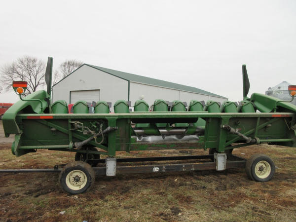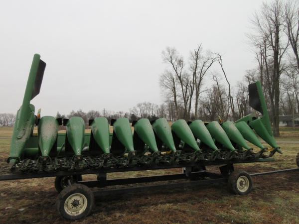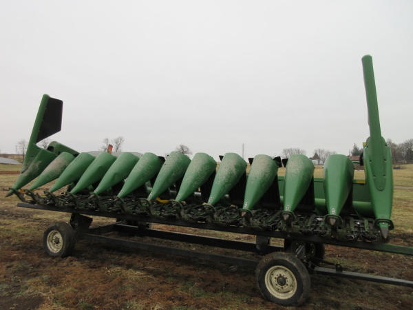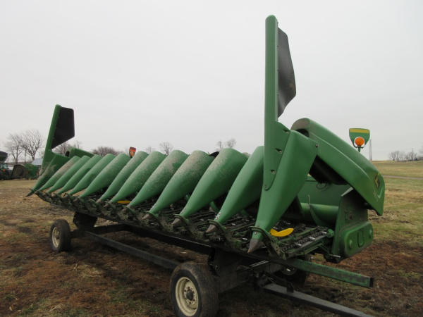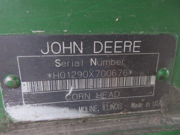 2003 John Deere 1290 Corn Head (NP7704), 12 row 20" corn head, hydraulic deck plates, PTO, plastic snoots, electronic sensors.