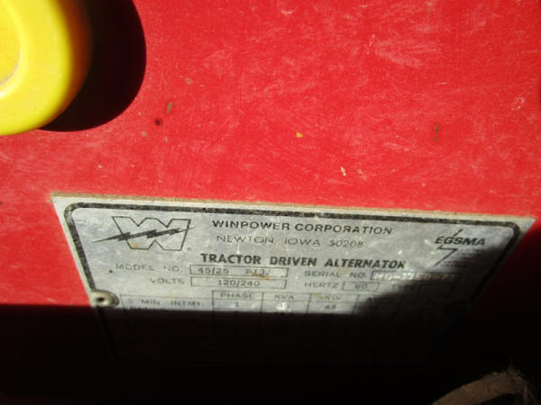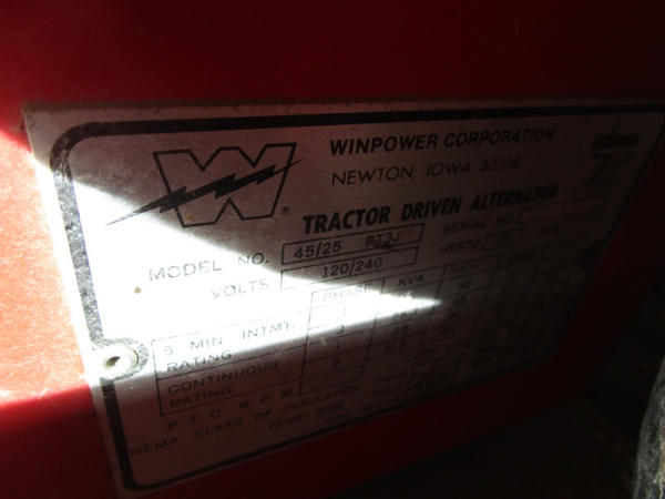 Vinpower Generator (TR6166), PTO driven generator, model 45/25, 120/240 volts, single axle, portable.