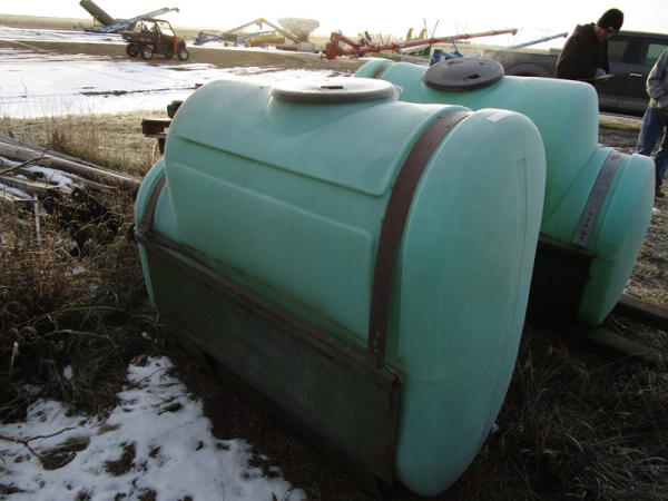 Saddle tanks (TR6147A), 200 gal saddle tanks, poly tanks with steel mounts.