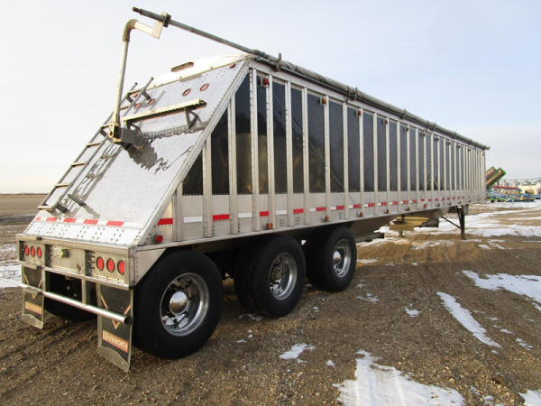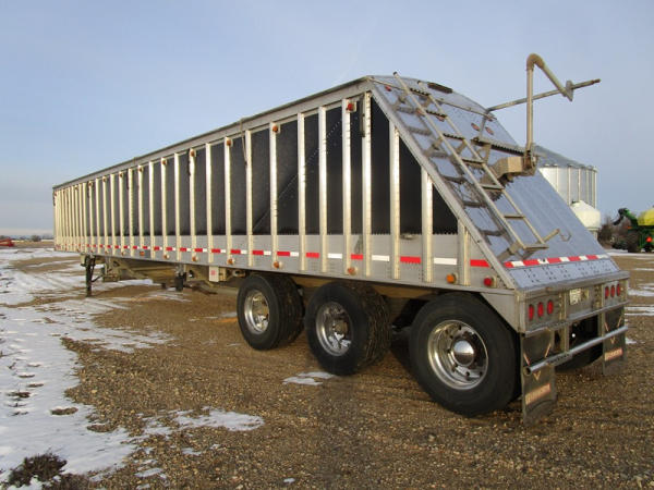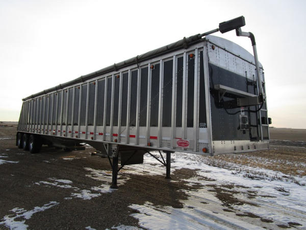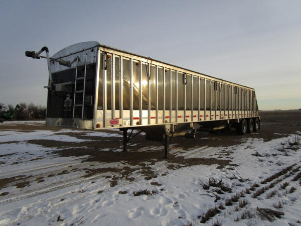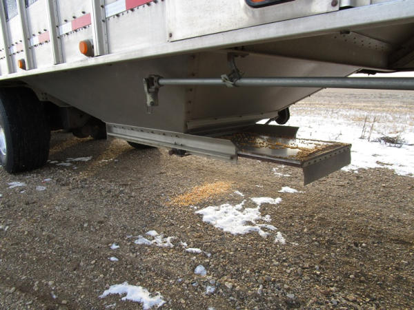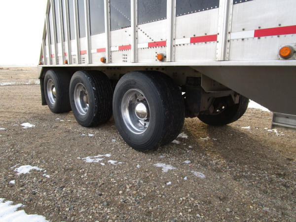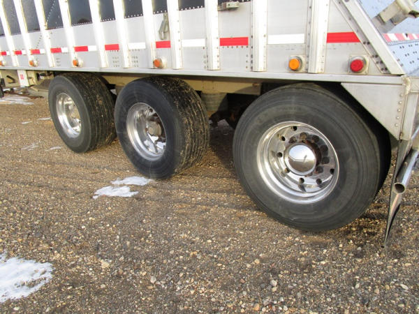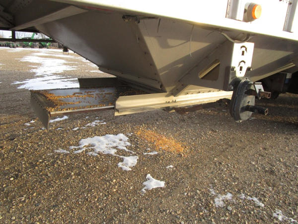 2009 Cornhusker Grain Trailer (TR6145), triple axle, roll tarp, air brakes, air ride suspension, twin hoppers, super single 455/55R 22.5 tires, aluminum rims, (2) Pro trap Smart 2 opener (both hoppers will have these but it is not pictured).