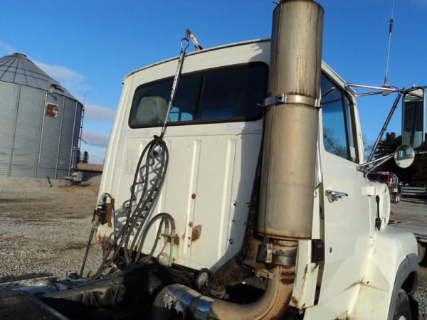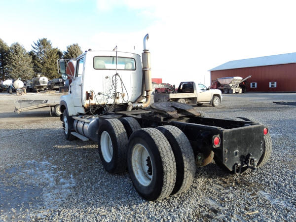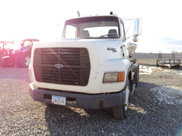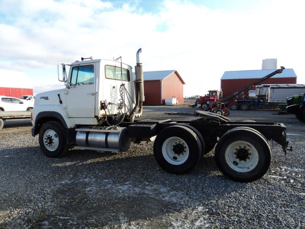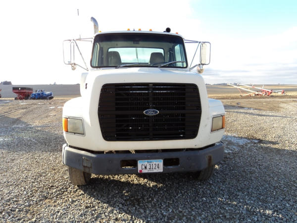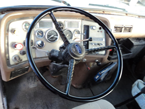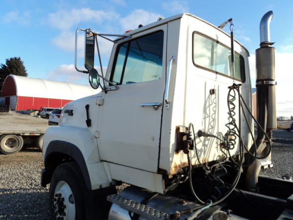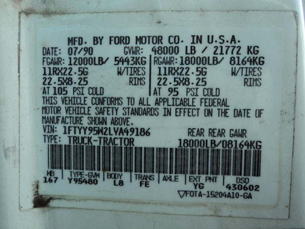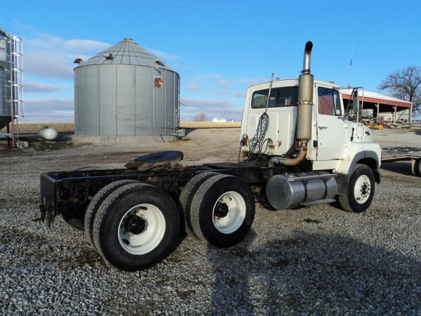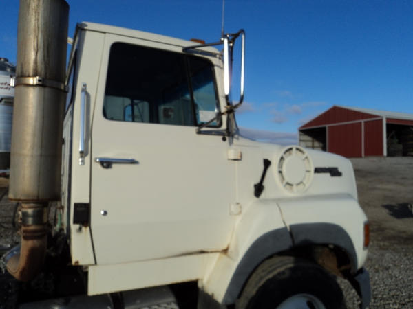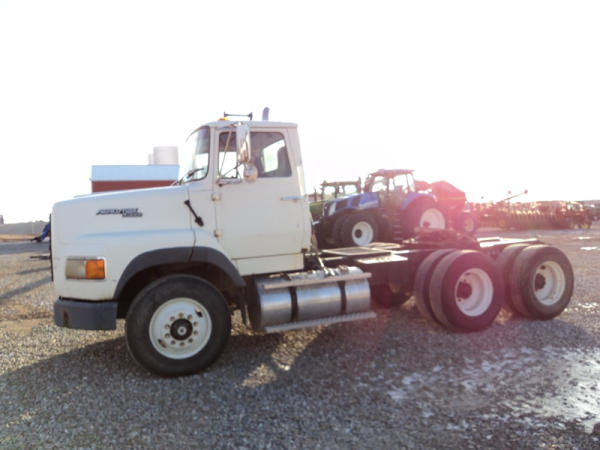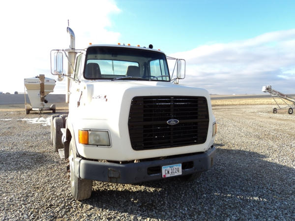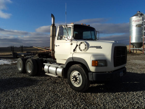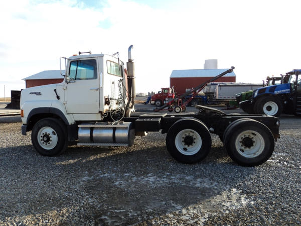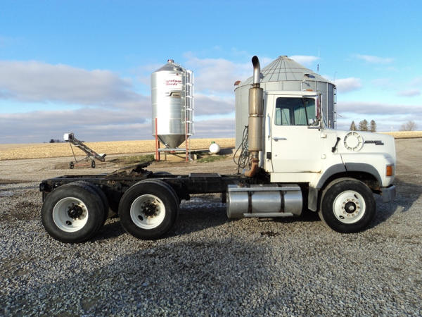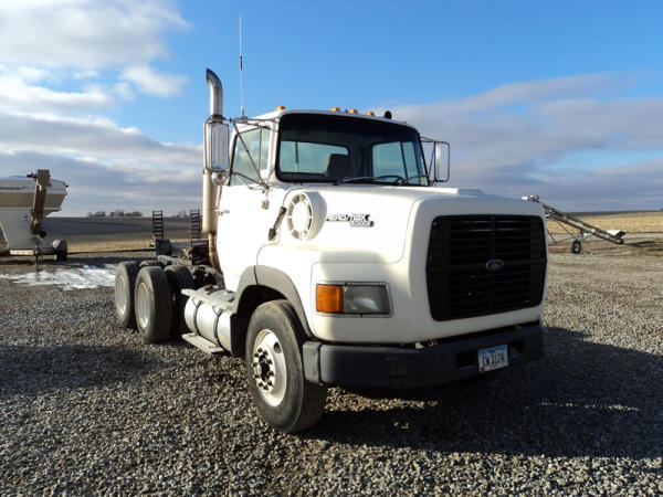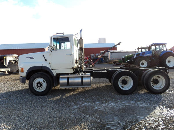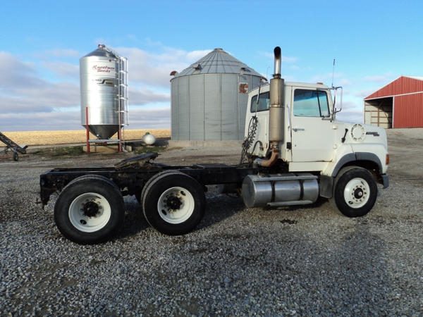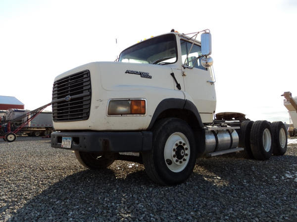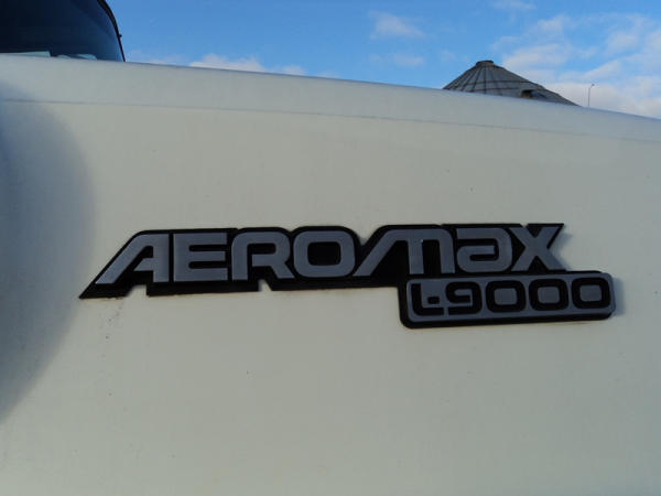 1990 Ford AeroMax L9000 Truck (PZ0894), Cummins diesel engine, 9 speed transmission, air conditioning, heat, Am/Fm cassette radio, tandem axle, full screw, 5th wheel, 5th wheel ball, 11R22.5 tires, shows 309,005 miles.
