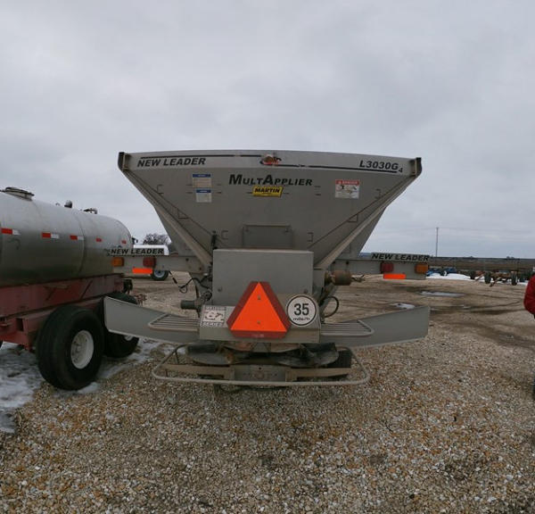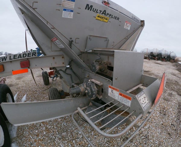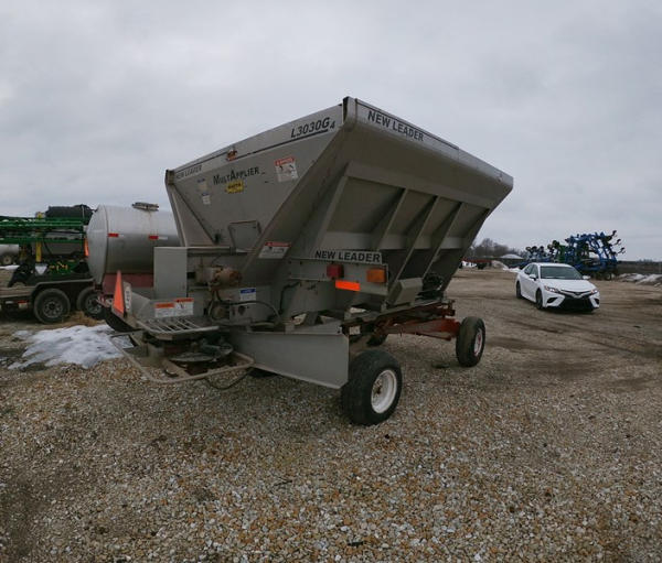 New Leader Dry Box (NJP1353), New Leader L3030 G4 MultApplier stainless steel dry spreader box, twin spinner, all hydraulic.