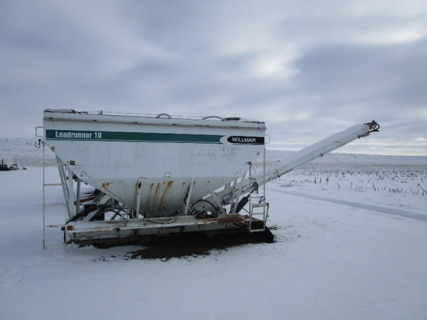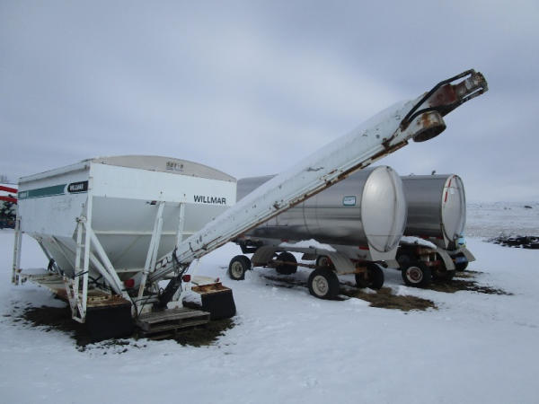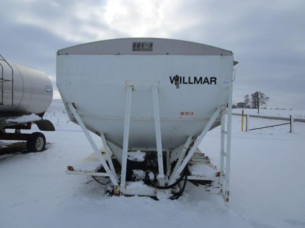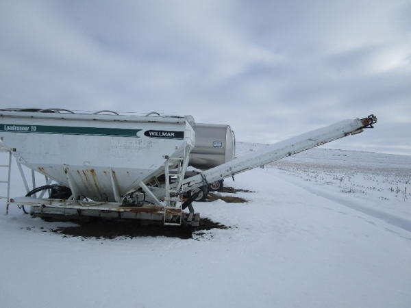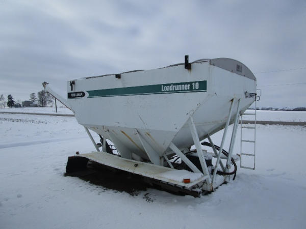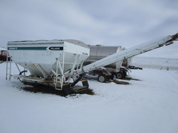 Willmar Loadrunner 10 (DR1012 Unit 603), 10 ton hydraulic stainless steel dry fertilizer tender box, rear auger, hydraulic pump and reservoir.