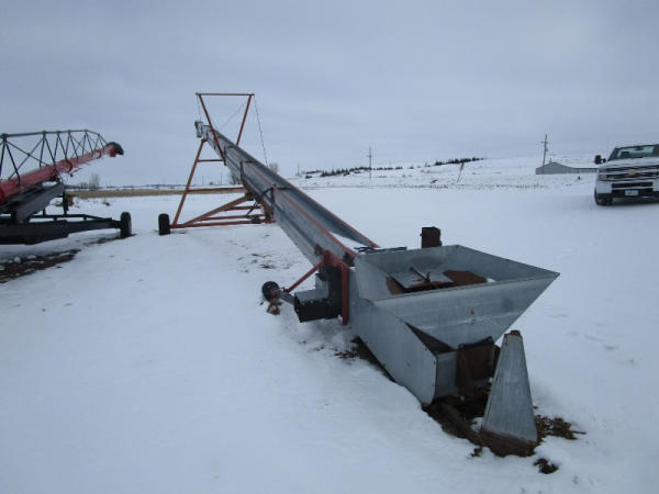 Hutchinson Mass Mover (DR1015 Unit 1288), approximately 80' X 8" portable grain conveyor, 540 PTO drive, hydraulic up/down.