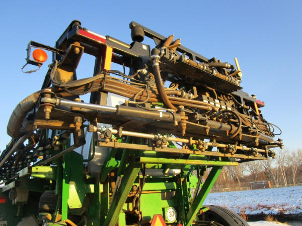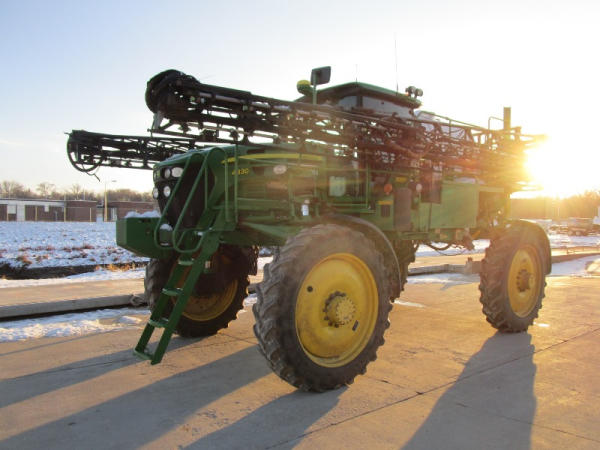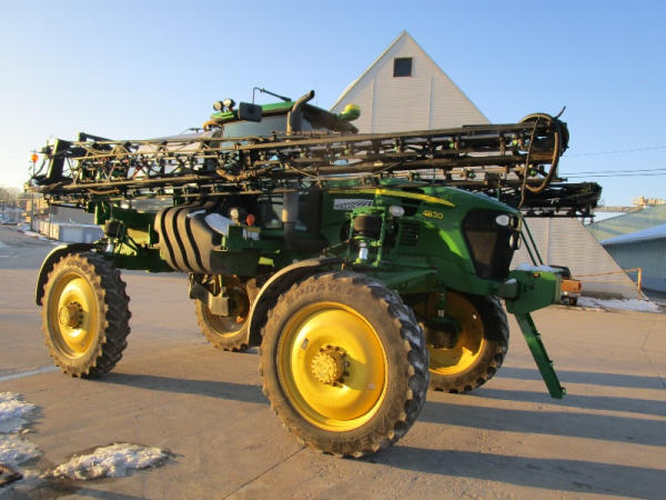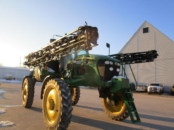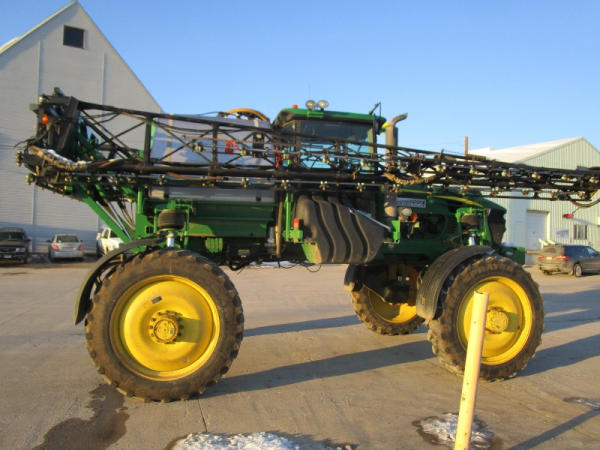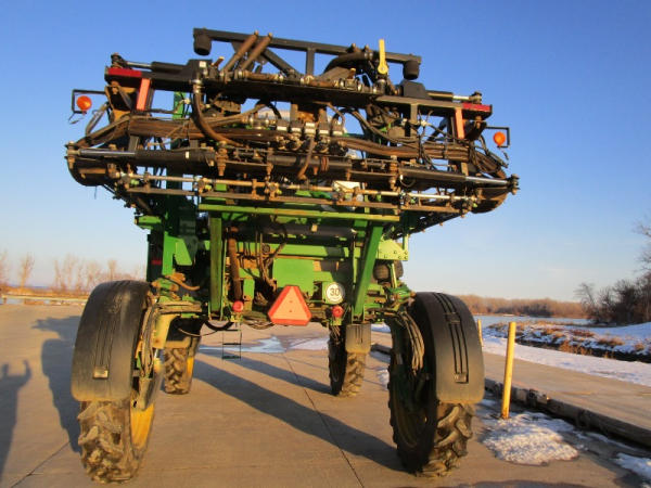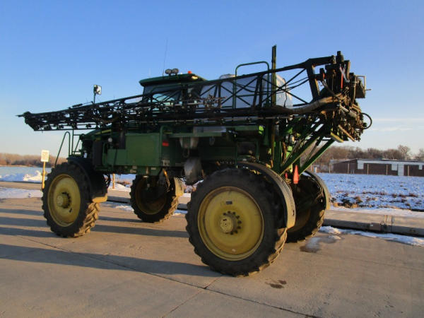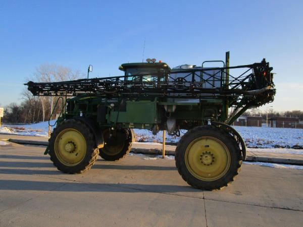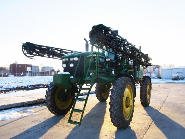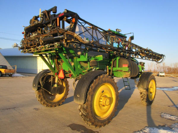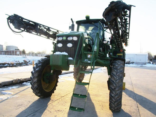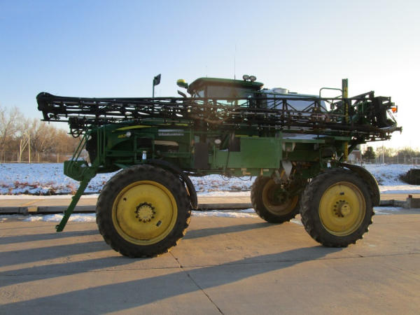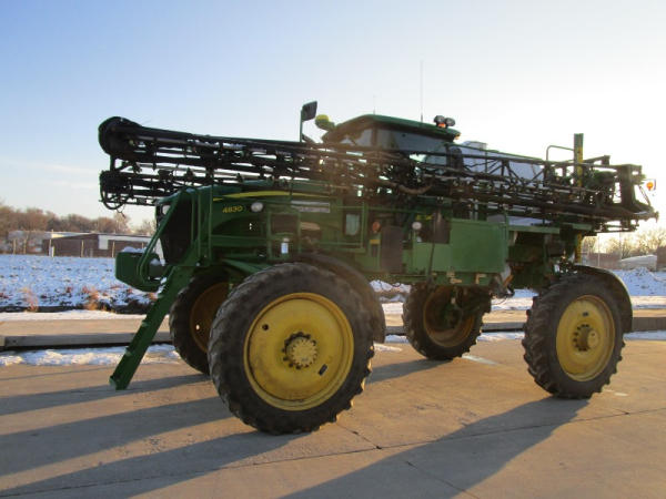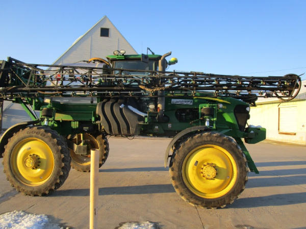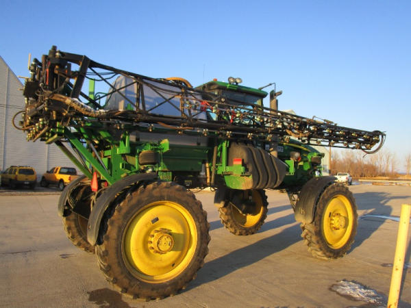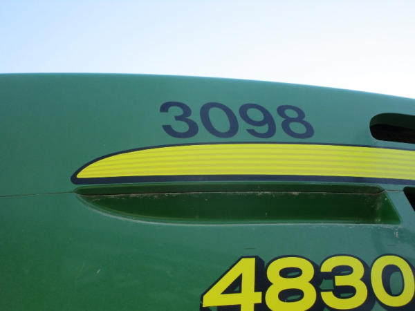 2010 John Deere 4830 (DR1023 Unit 3098), John Deere diesel engine, hydrostatic drive, 1000 gallon stainless steel liquid system, 100' boom, 5 way nozzle bodies, StarFire 3000 receiver, Green Star controller, stainless steel chemical inductor, front weight set, AM/FM CD radio, 380/90R46 row crop tires, shows 3573 hours.