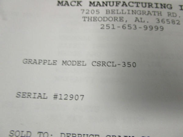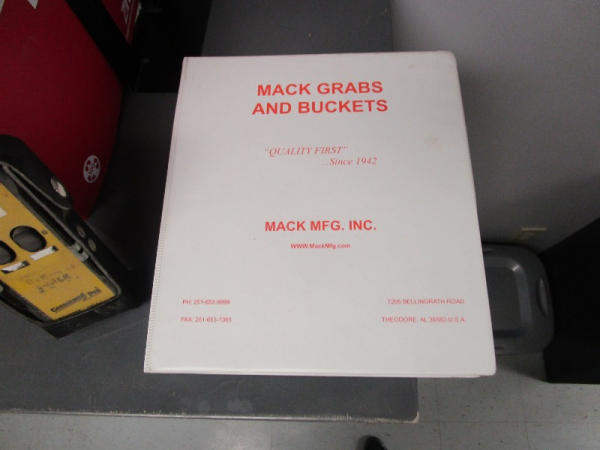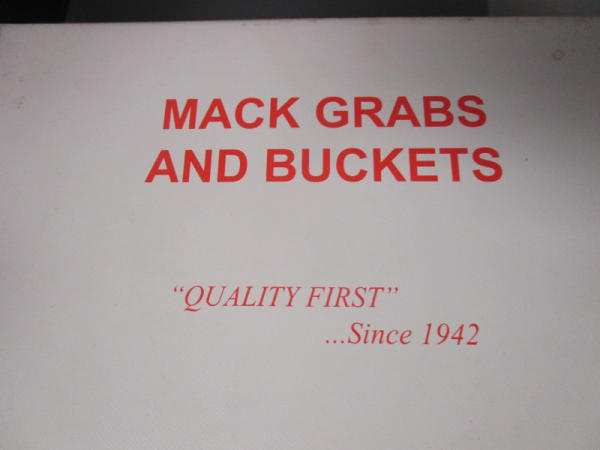 Mack Clam Bucket (DR1024), model CSRCL 3503.5 yard electric/hydraulic clam bucket, w/remote control, has manual book.