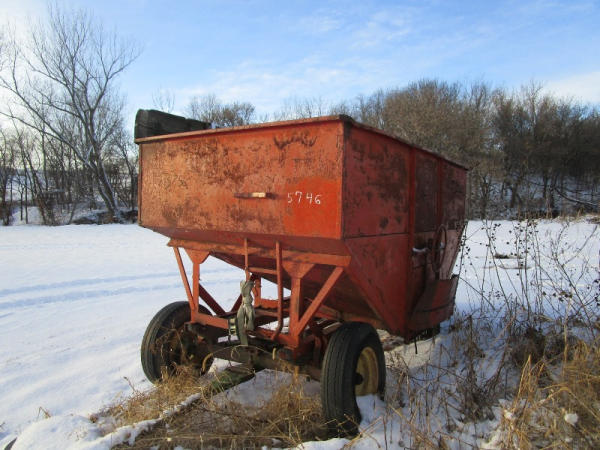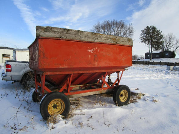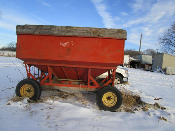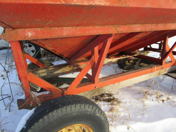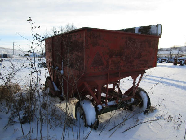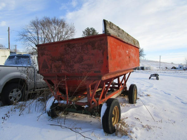 Bushnel Wagon (DR999), approximately 250 bushel gravity flow wagon, John Deere running gear.