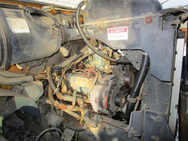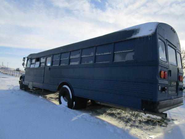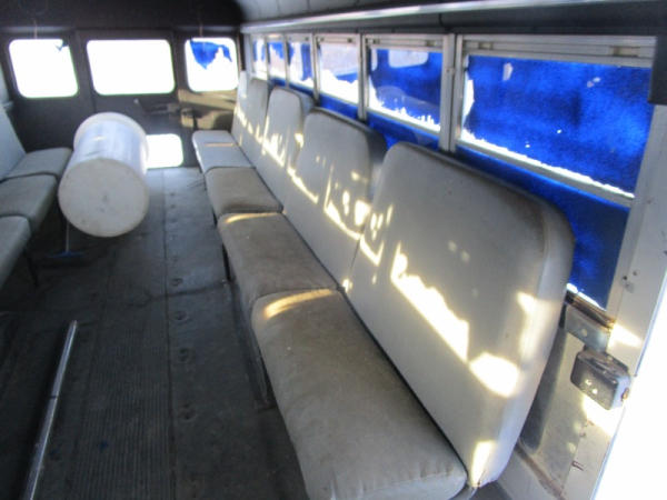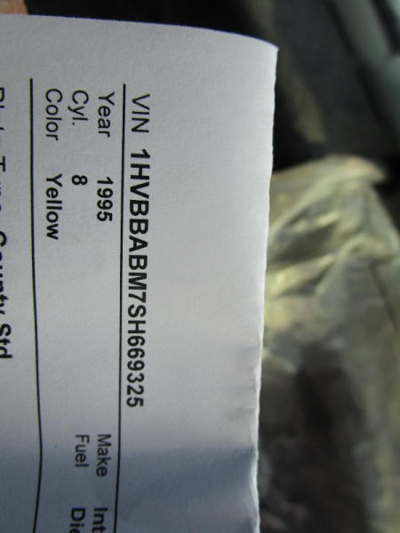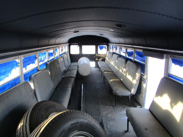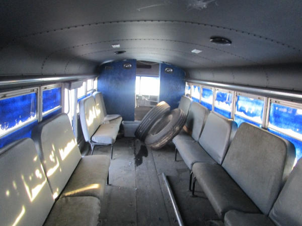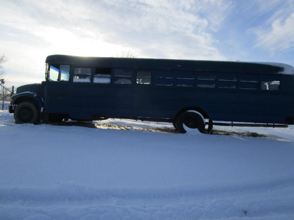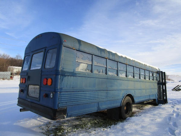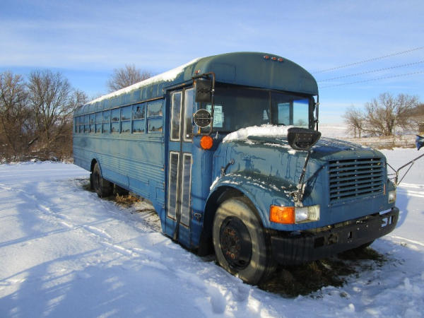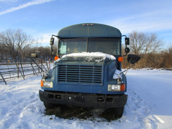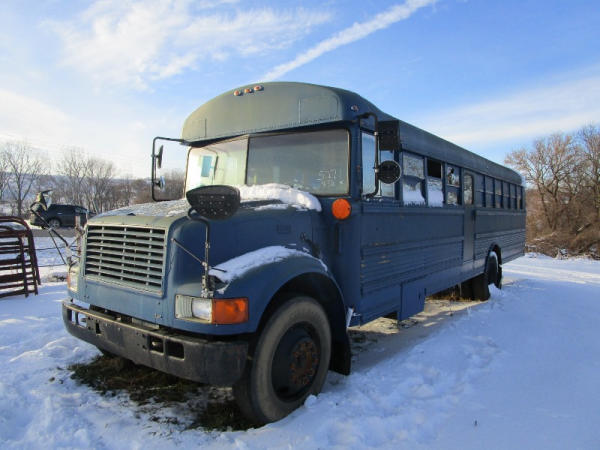 1995 International Bus (DR997), model 3800 school bus, DT444 diesel engine, automatic transmission, single axle, hydraulic brakes, side facing seats, 22.5 tires, shows 212,982 miles.