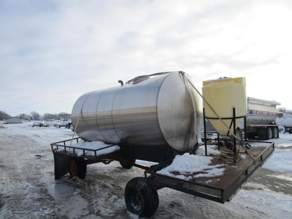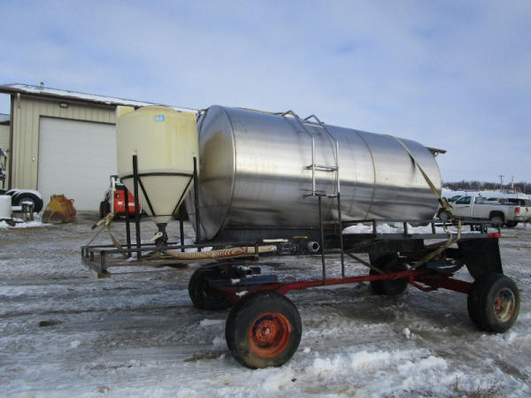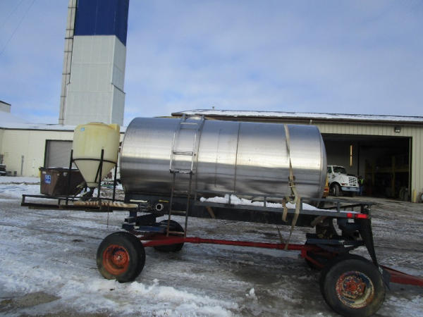 Stainless Steel Tank (DR1008), 1600 gallon stainless steel liquid tank, rear shuttle rack, poly chemical inductor.