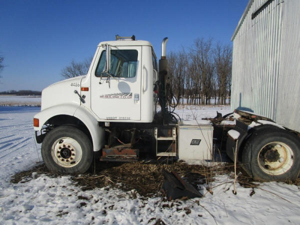 2001 International 8100 (DR1021 Unit 4485), diesel engine, 9 speed transmission, single axle, air ride suspension, air slide 5th wheel plate, air brakes, AM/FM radio, air conditioning, 22.5 tires, shows 388,796 miles.