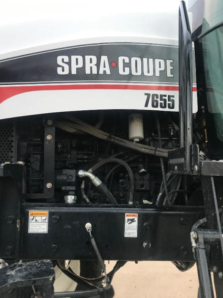 2010 Spra Coupe 7655 Sprayer (PD1129), Perkins Diesel engine, AC/Heat, AM/FM Radio, Envisio Pro Monitor, 60/90 foot booms, Integrated auto steer, 5 section boom, 3 way nozzle bodies, foam marker system, 380/90R46 row crop tires, 650/65r38 Float tires for rear axle, shows 1267 hours.