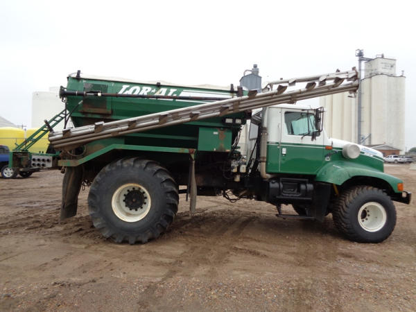 2000 Loral Turbo Easy-Rider 3000 SS Dry Floater (PD1135), IHC diesel engine, Allison automatic transmission, heat, air conditioning, AM/FM radio, cruise, Air-Max V dry air flow system, 70 foot booms, stainless steel tank, electric roll tarp, Mid-Tech control board, Mid-Tech TASC-6100 controller, Raven monitor, 66x43.00-25 rear tires, 48x25.00-20 front tires, shows 47,415 miles, shows 3605 hours.