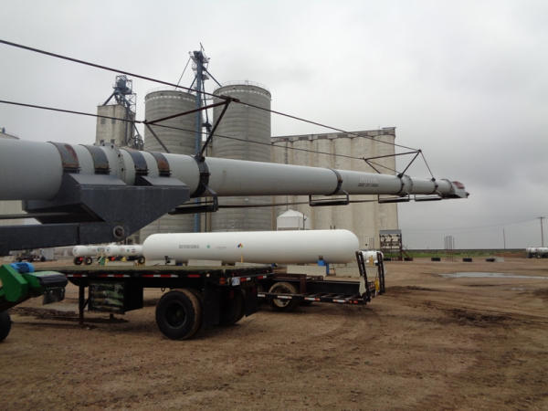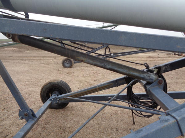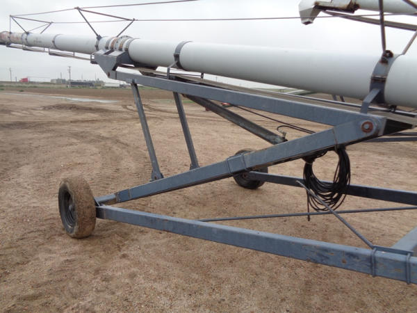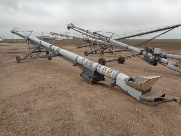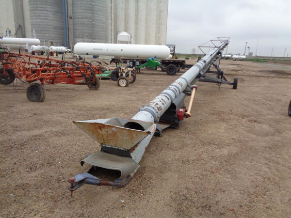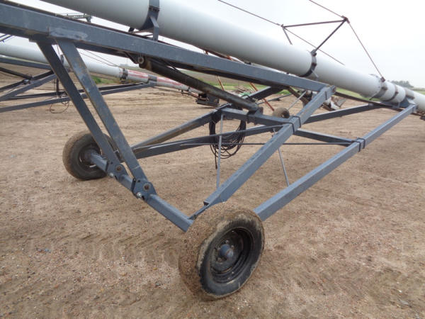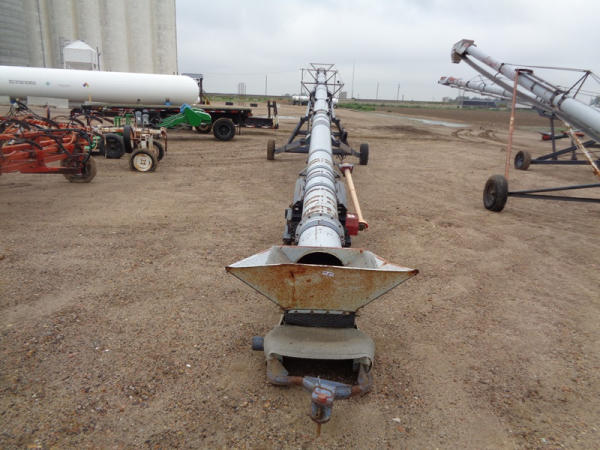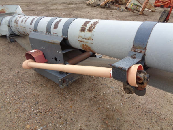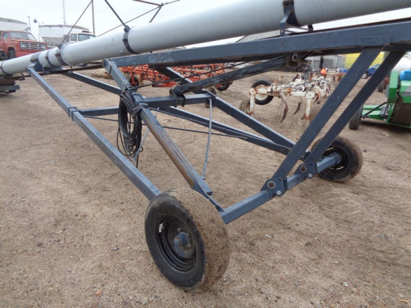 Speed King Tube Conveyor (PD1137), approx. 80 foot length, 16 inch belt, portable, hydraulic lift, 540 PTO, ST205/75R15 tires.