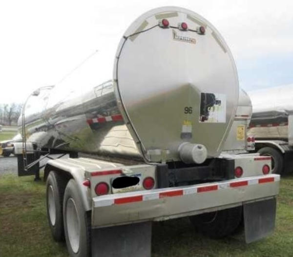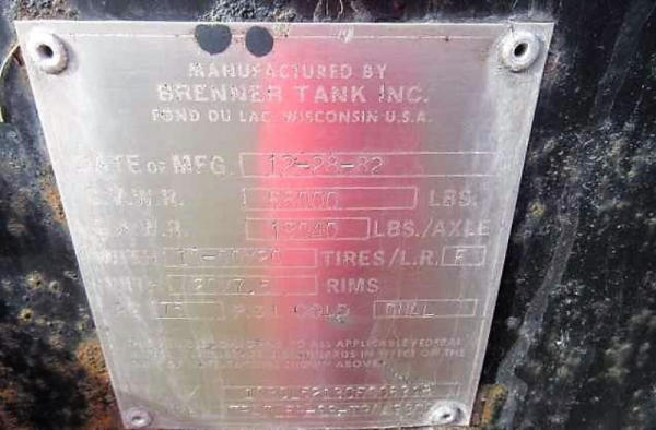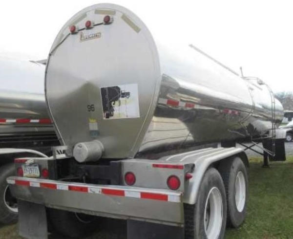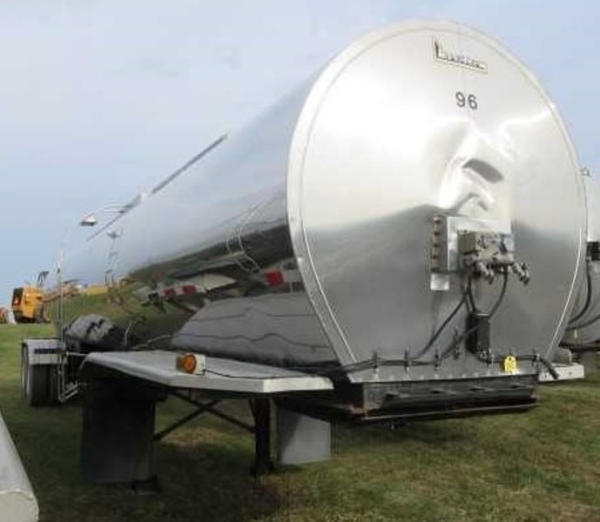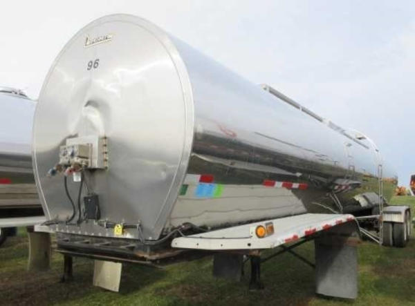 1982 Brenner Stainless Steel Tanker Trailer (ED791), 6800 gallon stainless steel single compartment milk tanker, 39' 6" long X 100" wide, GVW 68,000 lb., brakes 85%, 11R22.5 tires at 40%.