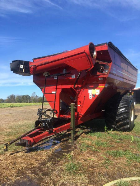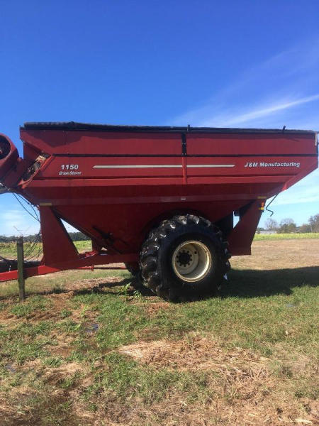J&M 1150 20S Grain Cart (ED793), roll tarp, no scale, tilting spout, good paint, tires are 1250/45/32 at 80%.