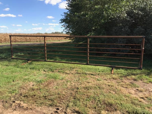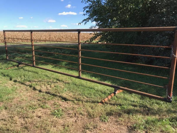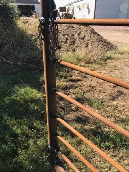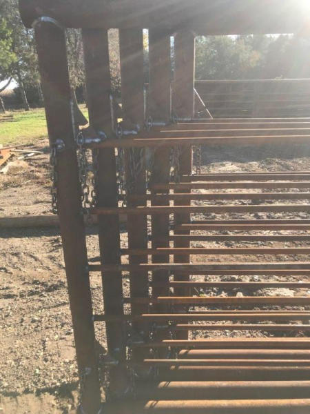 5 Freestanding Panels (ME341), TH Custom Manufacturing Freestanding Panels, full frame design built from 2-7/8" pipe, 24ft long by 5'9" tall, 7/8 rod ran through the uprights to prevent sharp edges, bent legs to prevent panel from sliding and to allow sturdy placement, saddle cuts on all uprights, drain holes on all uprights to prevent rusting from within the pipe, double chains standard on all panels.