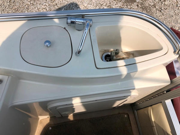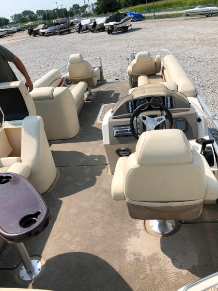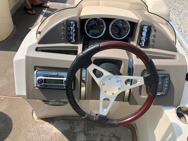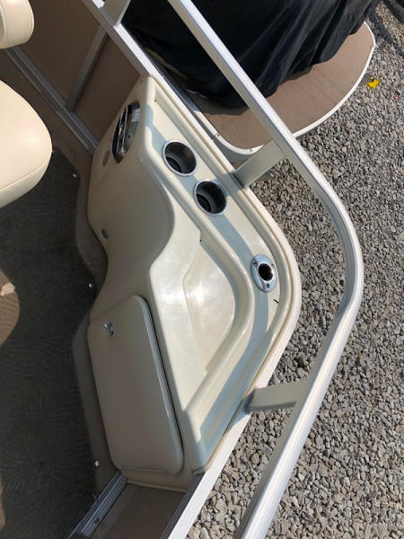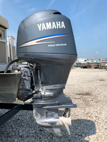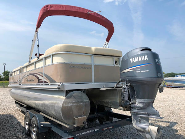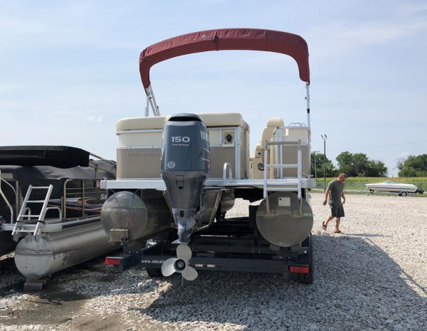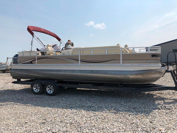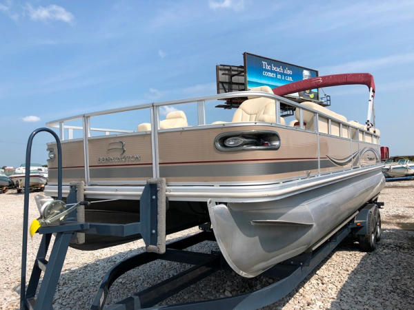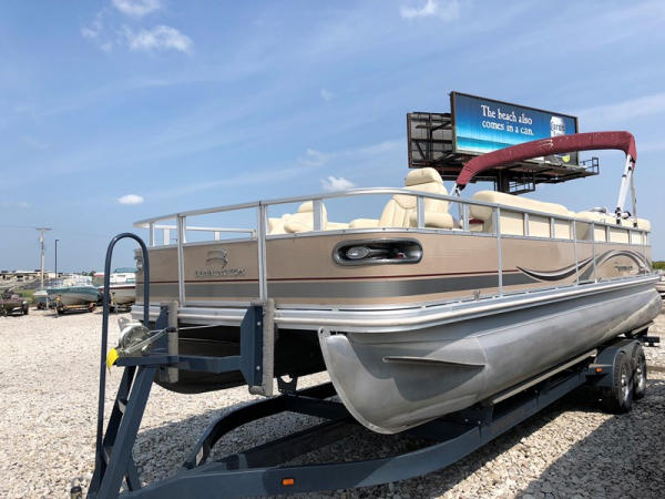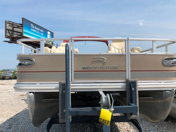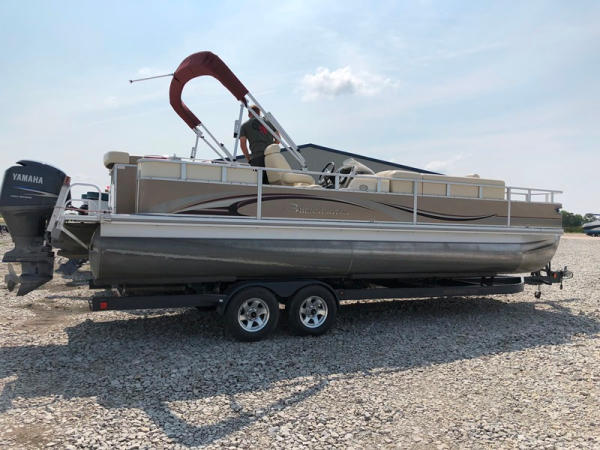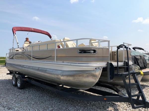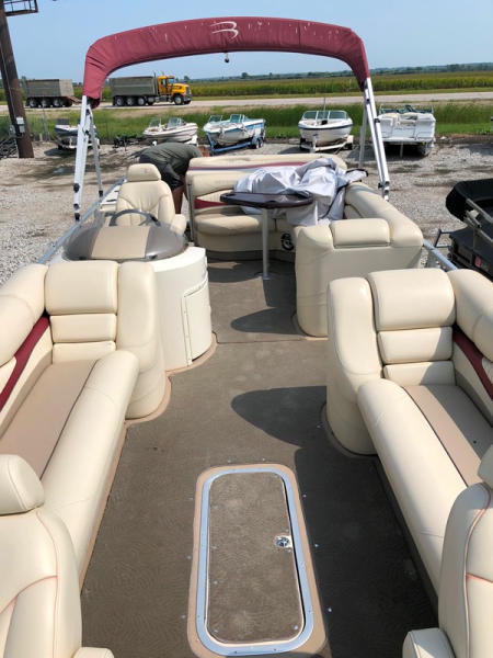 2009 Bennington 2577 RFSI (CG539), Yamaha 150 hp 4 stroke, in floor storage, Bimini top, snap out carpet, snap on covers, galley with refrigerator, docking lights, tandem axle trailer.