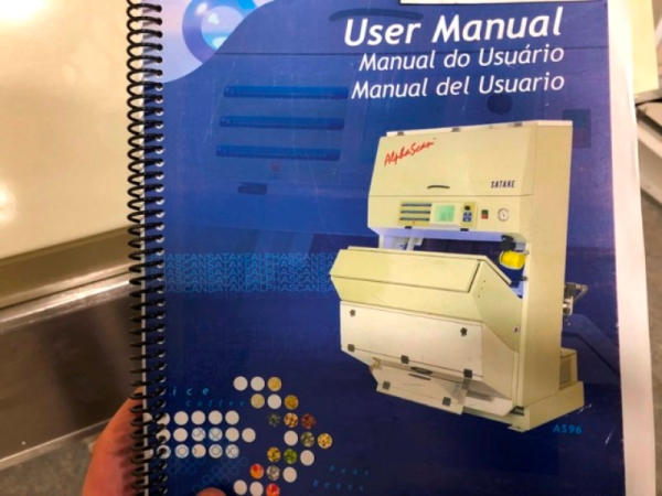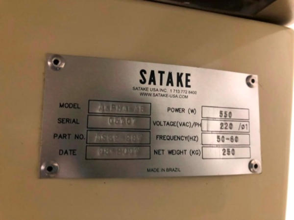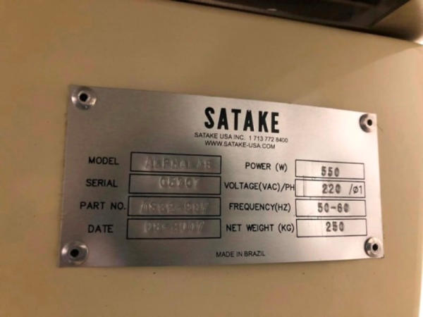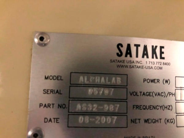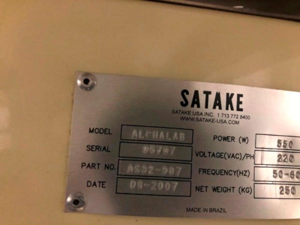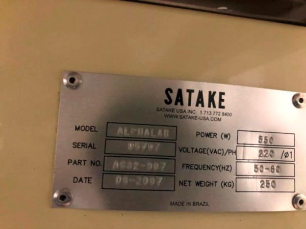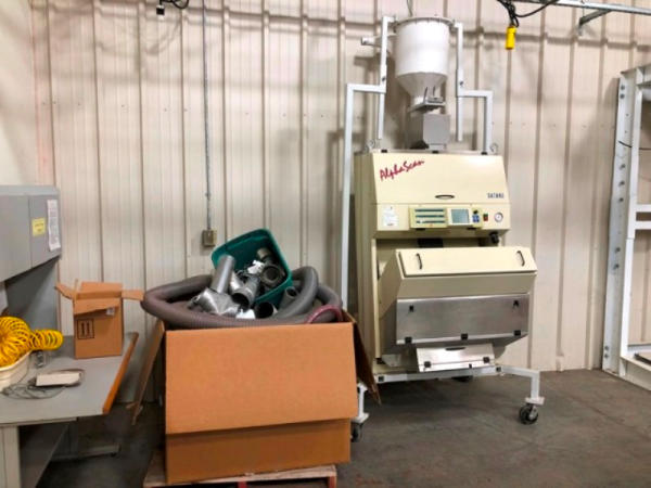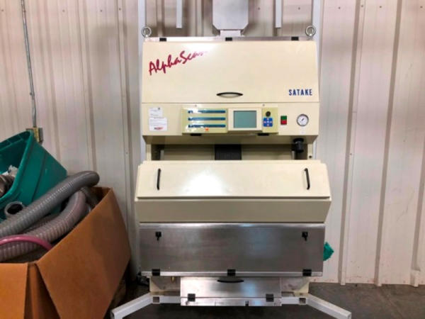 2007 Satake AlphaScan Color Sorter (NP6434), Model Alphalab, 550W, 220V, 50-60HZ, S/N 05707, with shelling line cyclones and extra parts.