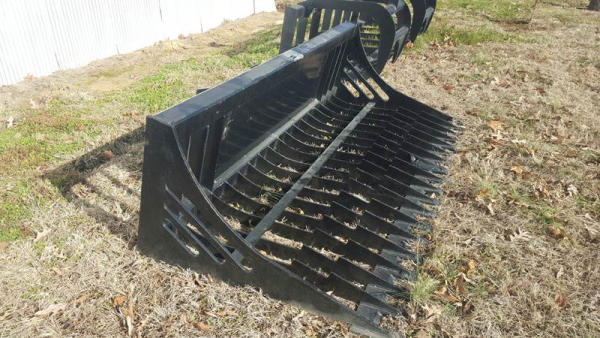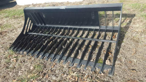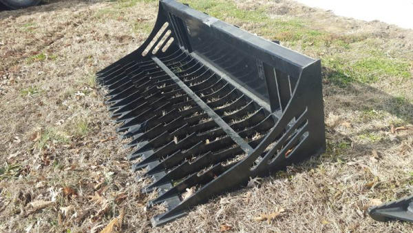 Rock Bucket For Skidsteer Loader (PD1145), 72 inch, new never used, tines are spaced at 3 inches to let dirt sift through, works great for rock or demolition applications, has standard skidsteer quick attach plate.