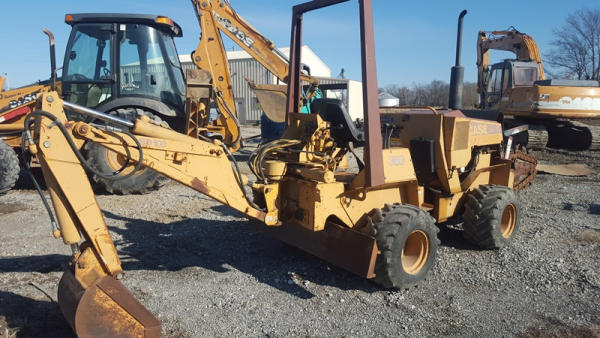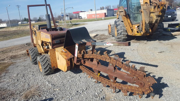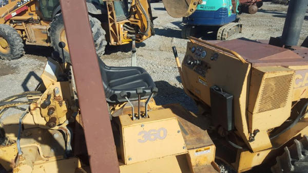 Case 360 Trencher with Angle Backfill Blade & Backhoe (PD1148), 5 foot trenching boom, with combination rock and cup teeth, SD100 backhoe attachment with 16 inch bucket and 2 lever controls, 37 hp Deutz Air cooled diesel engine, hydrostatic transmission, 1392 hours, 4 way adjustable backfill blade, trencher works runs and operates great.