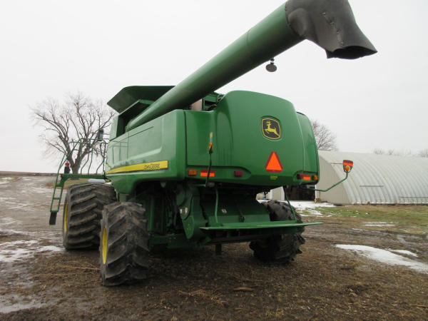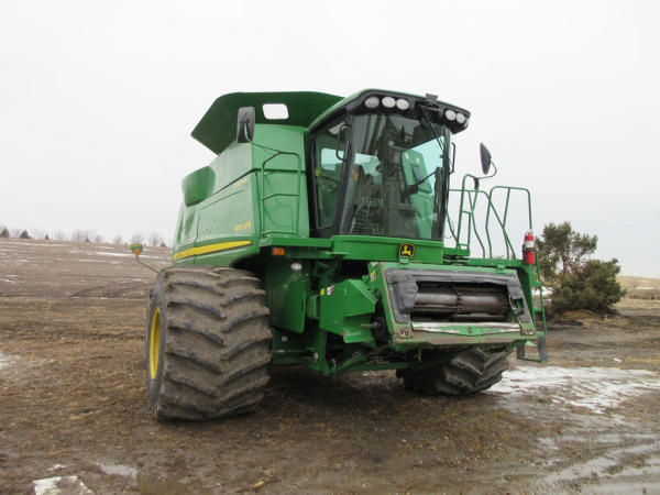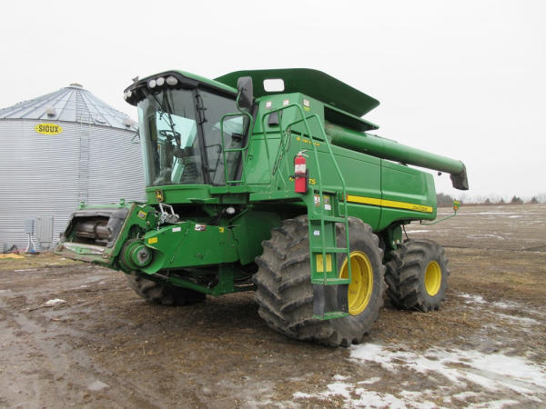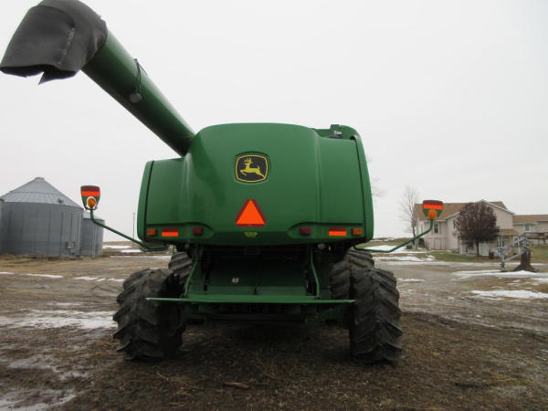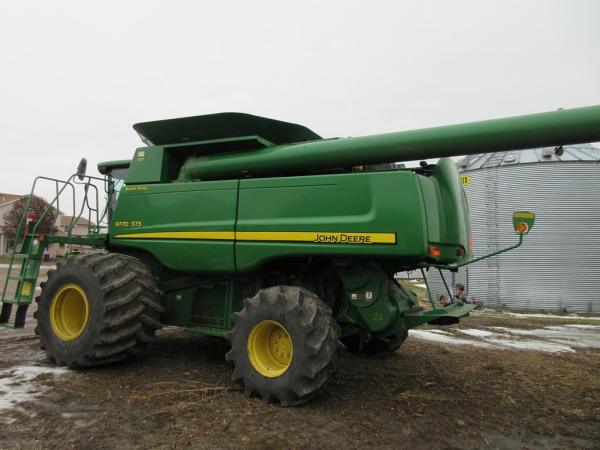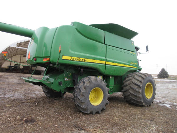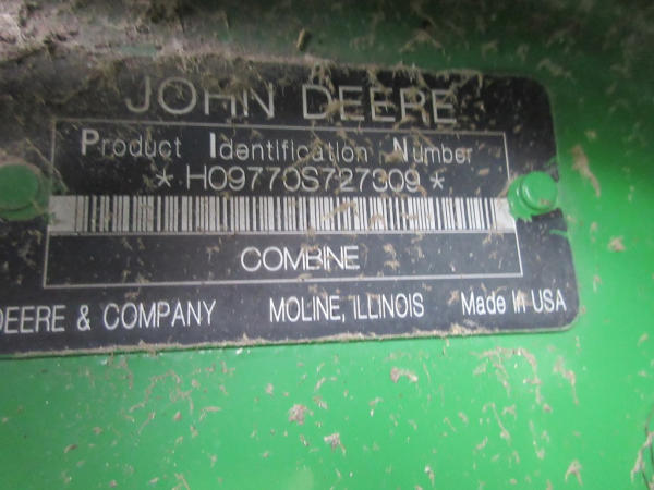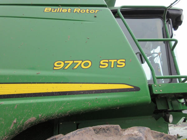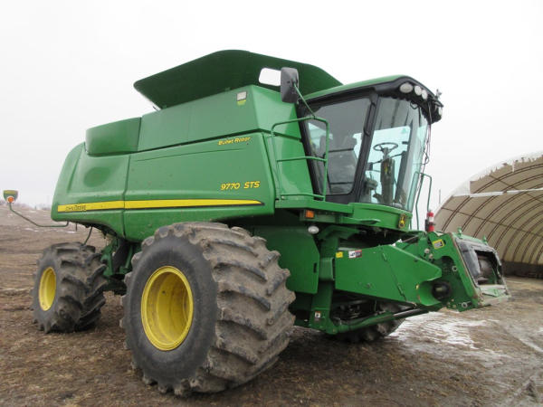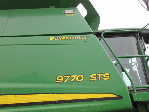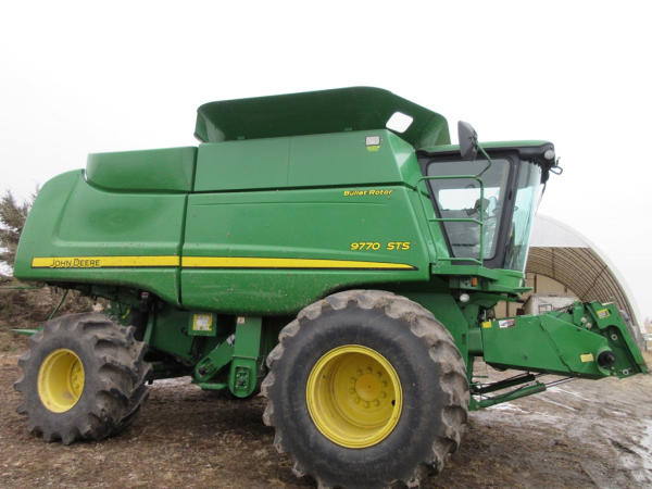 2008 John Deere 9770 STS 4x4 Combine (CP659), John Deere diesel engine, hydrostatic drive, heat, air conditioning, Am/Fm CD radio, Bullet Rooter, hydraulic feeder house, bin extensions, 76x50.00-32 front tires, 28L-26 rear tires, Lincoln QuickLub oil system, John Deere Command Center, wired for GPS, shows 3,326 engine hours, shows 1,979 separator hours.