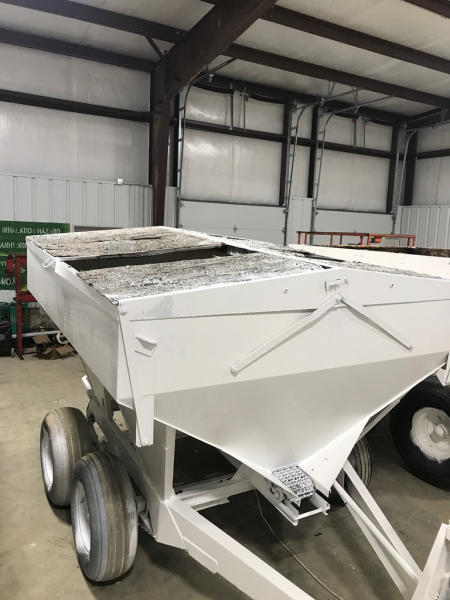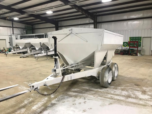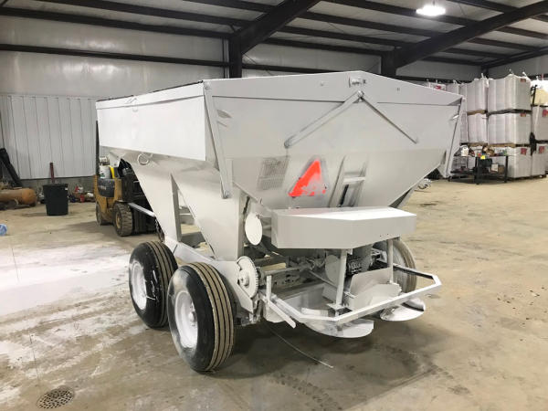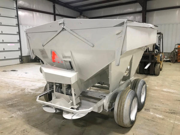 Willmar 500 Dry Spreader (NP7719, Unit 15), stainless steel, tandem axle, flotation tires, PTO, dual spinners.