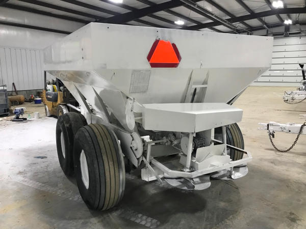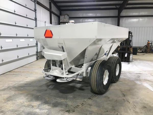 Willmar Super 600 Dry Spreader (NP7720, Unit 17), stainless steel, tandem axle, flotation tires, PTO, 50' spread pattern, dual spinners.