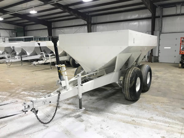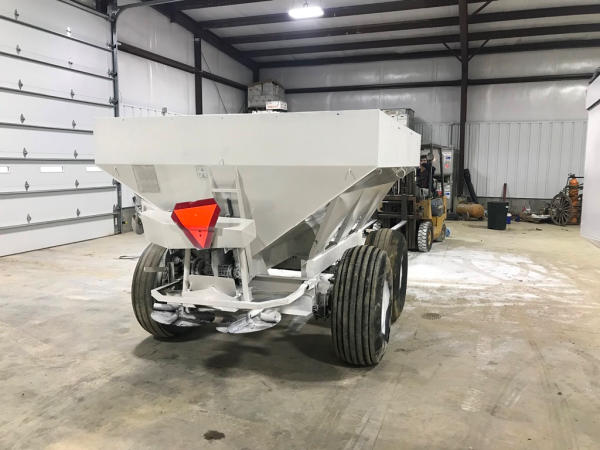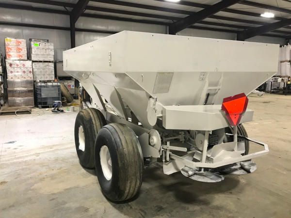 Willmar Super 600 Dry Spreader (NP7721, Unit 16), stainless steel, tandem axle, flotation tires, PTO, 50' spread pattern, dual spinners.
