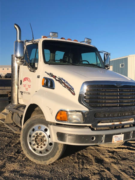 2009 Sterling (DR1057), Mercedes diesel engine, 10 speed transmission, day cab, tandem axle full screw, air ride suspension, air slide 5th wheel plate, AM/FM radio, heat/air conditioning, cruise control, tilt wheel, power windows & locks, dual aluminum fuel tanks, outside aluminum wheels, 24.5 tires, frame mounted storage boxes, shows 341,000 miles.