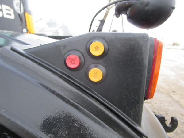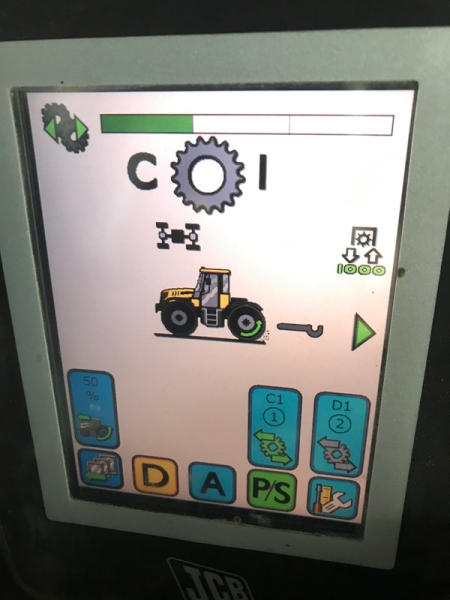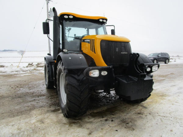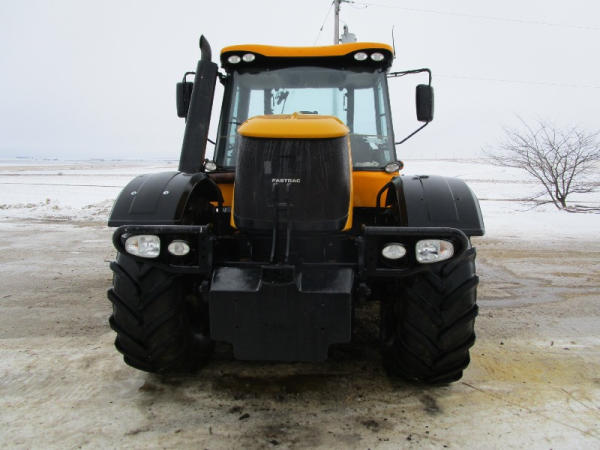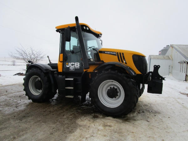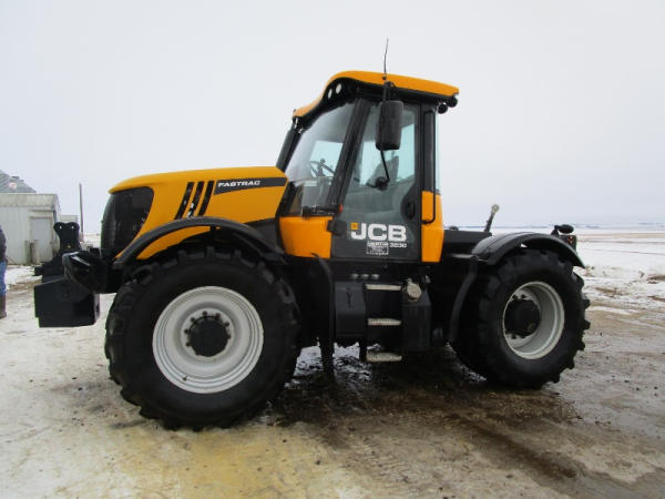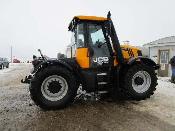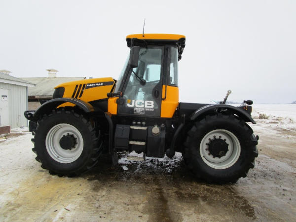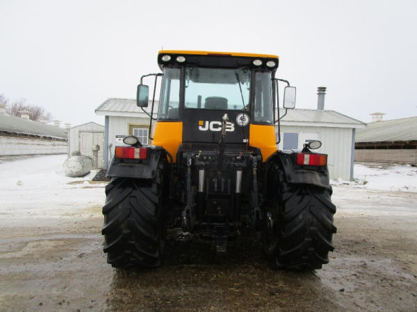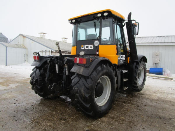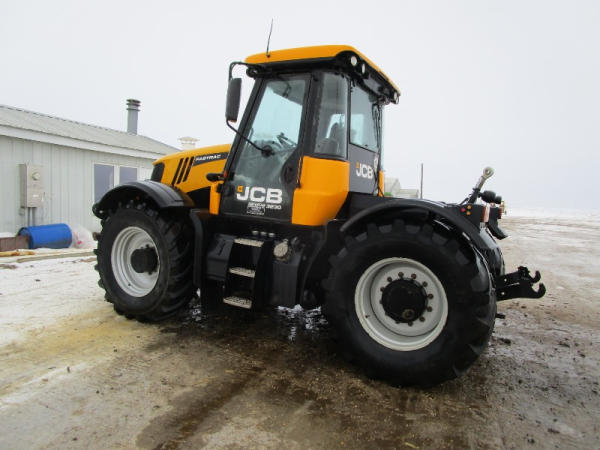 2011 JCB 3220 (DR1051), Cummins diesel engine (new crate engine w/63 hours), Power Shift or automatic drive, 4X4, cab heat/air conditioning, rear PTO, 4 remote hydraulic outlets, cab side hydraulic controls, air brakes and rear outlets, rear 3 point hitch, 900 KG front weight, AM/FM radio, 540/65R30 tires, fronts only have approximately 80 hours, shows 4684 hours.