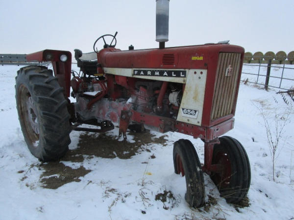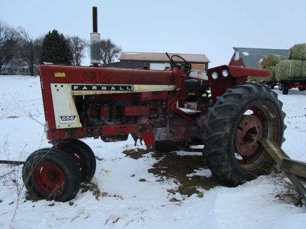 International 656 (DR1049), gas engine, manual transmission, narrow front, rear hydraulic oulets, rear 2 point hitch, 540 PTO, 15.5-38 rear tires, rear axle weights, shows 1991 hours.