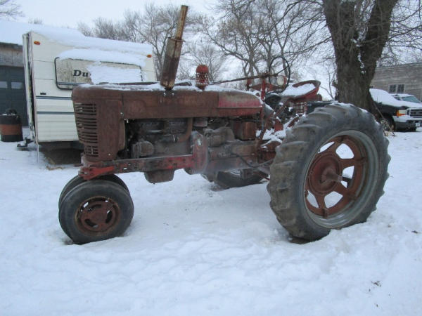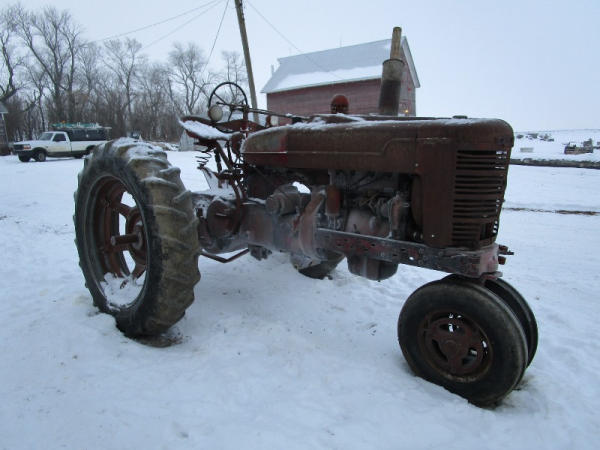 Farmall M (DR1050), gas engine, manual transmission, narrow front, rear PTO, 13.6-38 rear tires.