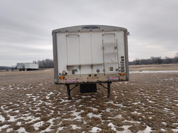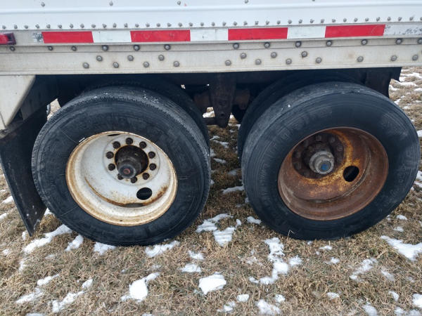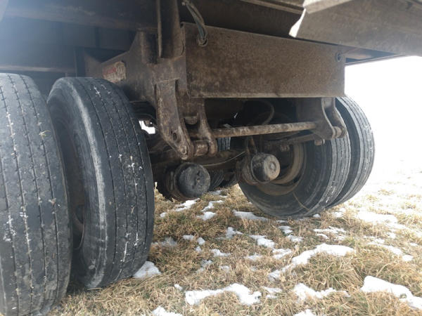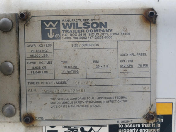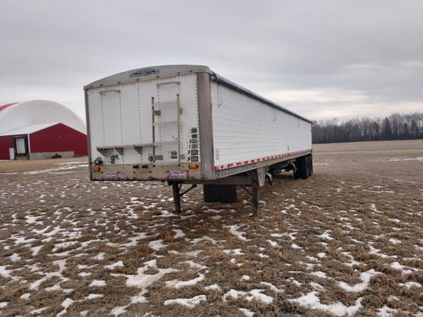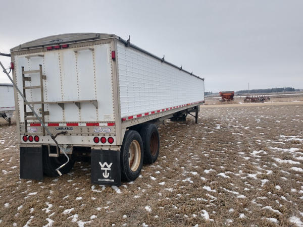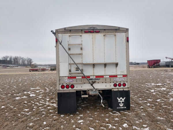 1998 Wilson Hopper (DR1054), model DWH-400 43'X 96" Wilson aluminum grain hopper, 66" sides, tandem axle, spring suspension, good roll tarp, brakes 85%, 285/75R24.5 tires, steel wheels.
