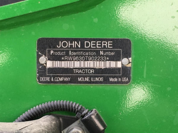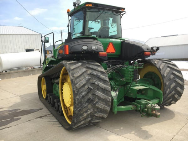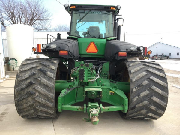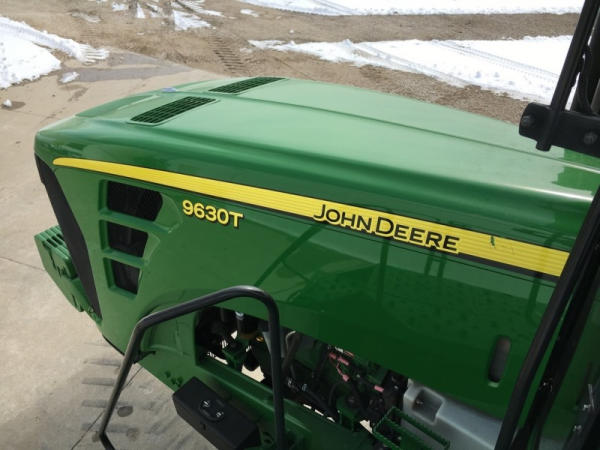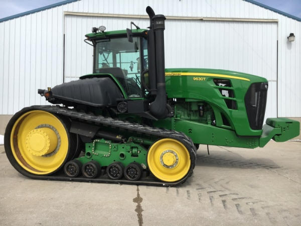 2008 John Deere 9630T (ME344), John Deere diesel engine, powershift transmission, Autotrac ready, 1000 PTO, 4 SVC's, am/fm radio, heat, air conditioning, Deluxe cab with leather and buddy seat, high intensity work light package, tilt wheel, 36" tracks, full set of front suitcase weights, Cat 5 wide swing drawbar, brand new air compressor for chassis air ride system, both turbo actuator solenoids have been replaced in the last 1,000 hours, fan sheave has been greased annually along with bogey wheel oil changes, 13L water pump update done at 2,000 hours, already wired for John Deere rate controller shutoff, shows 4626 hours.