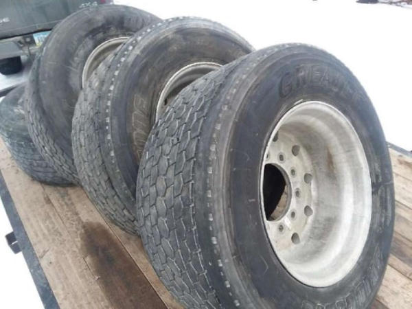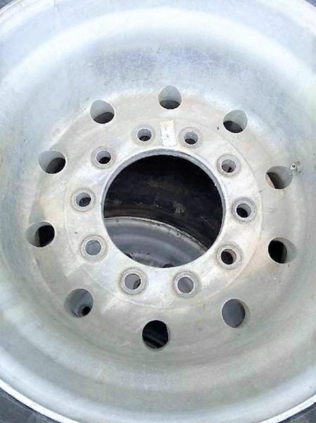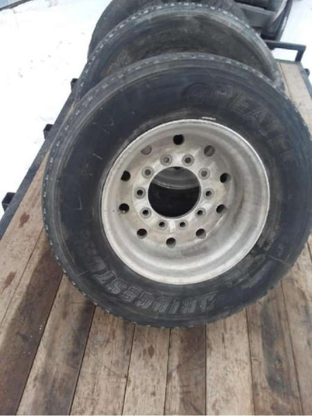 Super Single Alcoa Wheels And Tires (TH386), aluminum hub pilot wheels, Virgin Bridgestone 455/50R22.5 tires.