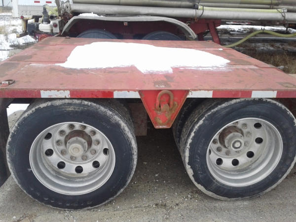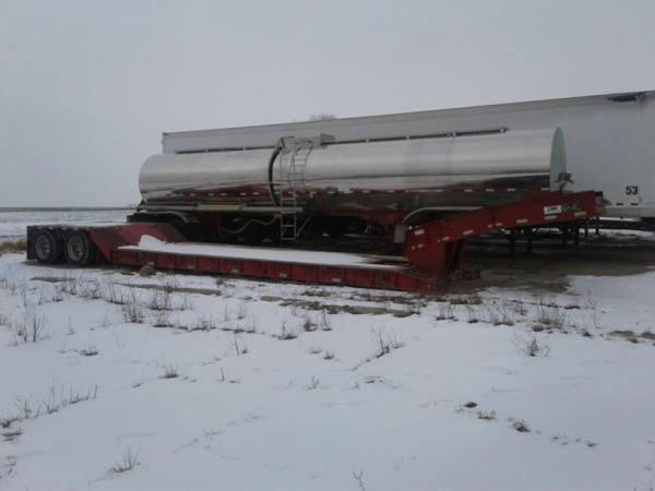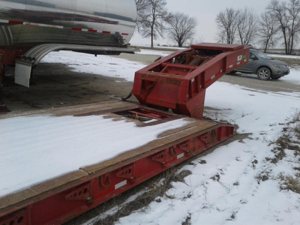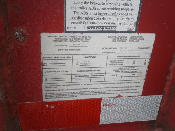 2007 Witzco Low Boy Trailer (PZ0870), 2007 Witzco 35 ton hydraulic detach low boy trailer, new bed, tandem axle, 255/70R22.5 tires, aluminum rims.