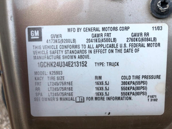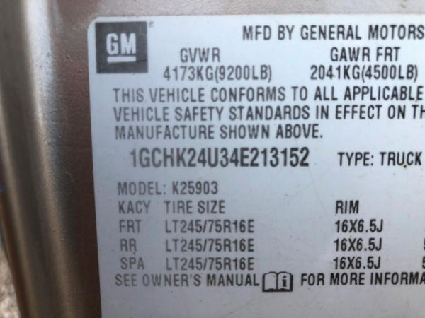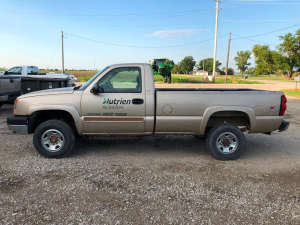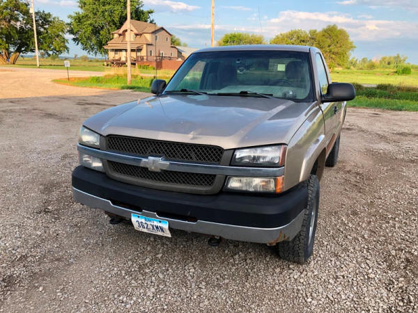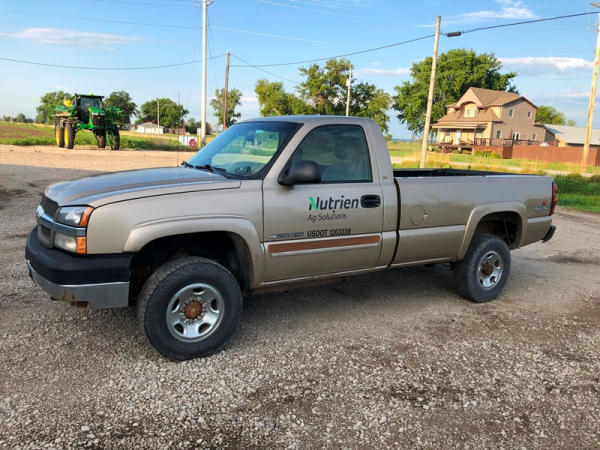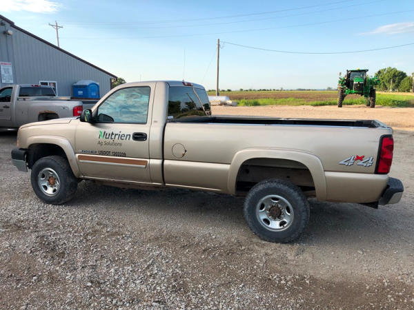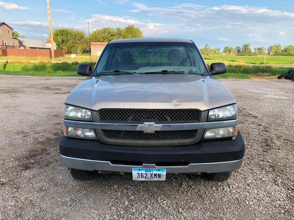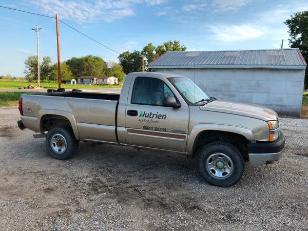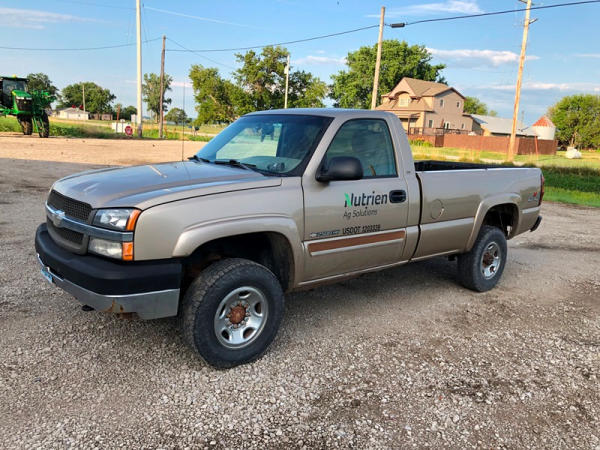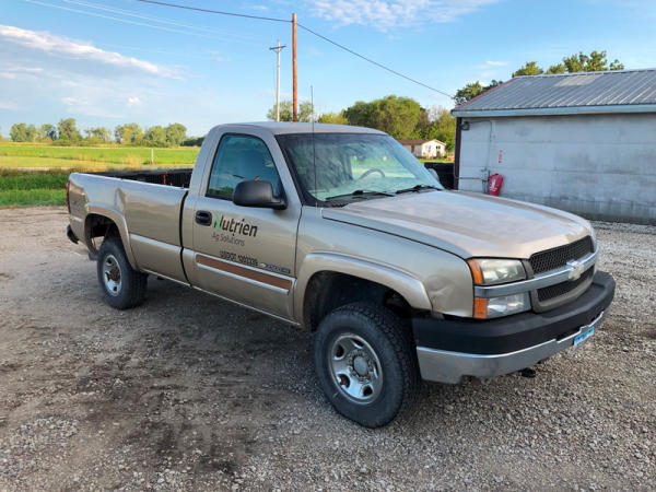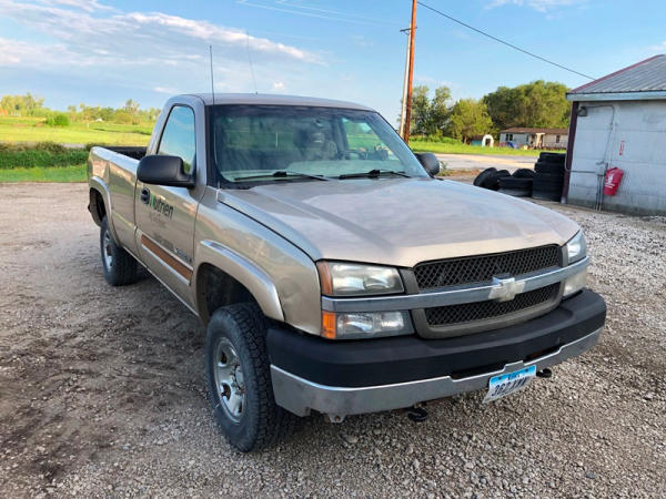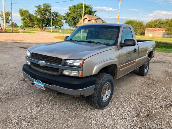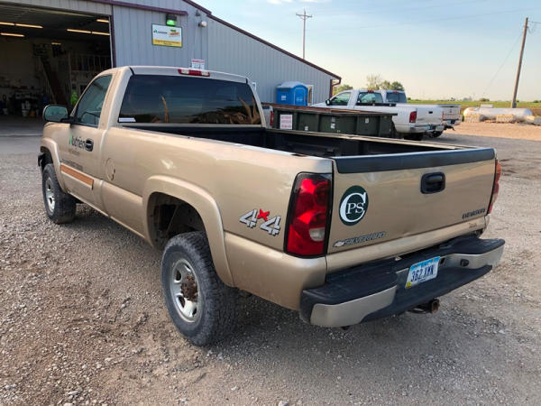 2004 Chevrolet Silverado 2500HD 4x4 Pickup (NP8628, Unit 42695), regular cab, Vortec 6.0L gas engine, automatic transmission, heat, air conditioning, dual climate control, Am/Fm CD radio, cruise, power windows, locks and mirrors, Draw-Tite rear hitch, plactic bed liner, LT245/75R16 tires, shows 258,179 miles.