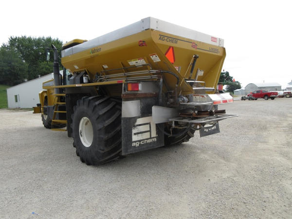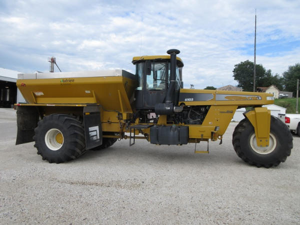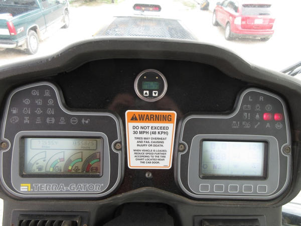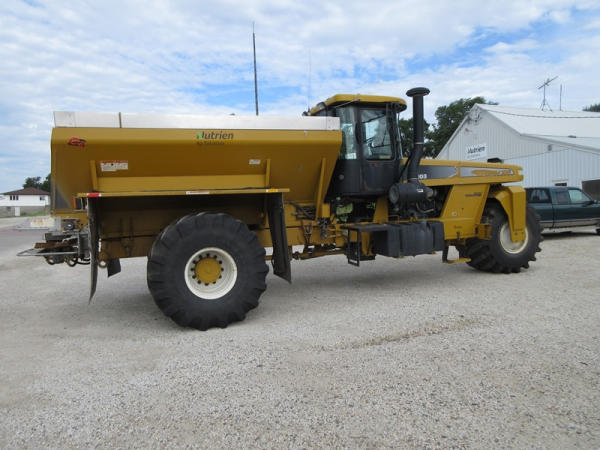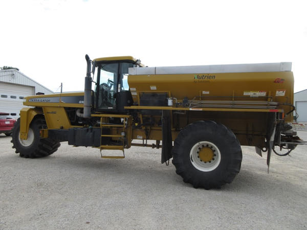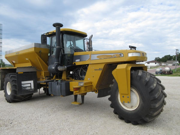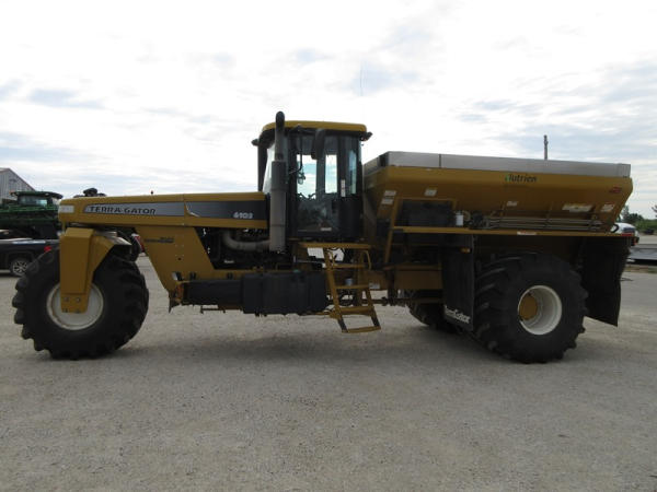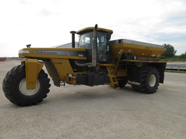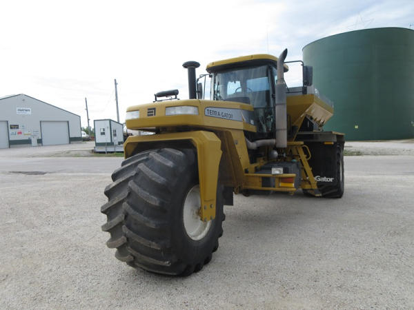 2005 Terra Gator 6103 Dry Floater (PZ2657, Unit 89396), John Deere diesel engine (S/N RG6081H267333), Terra Shift transmission, air conditioning, heat, Am/Fm cassette radio, New Leader L3020 G4 stainless steel dry spreader box, twin spinner, all hydraulic, Alliance 1000/50R25 tires, Raven Viper Pro monitor, Raven SCS661 monitor, lightbar, Raven Starlink GPS, shows 5582 hours.