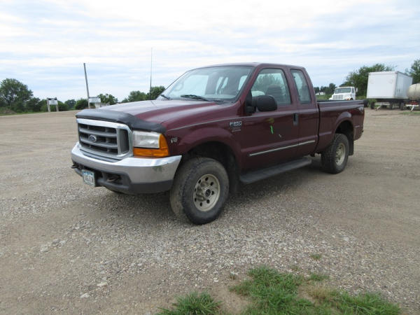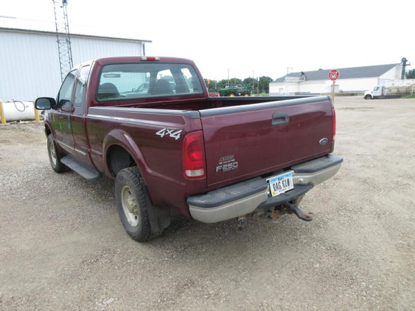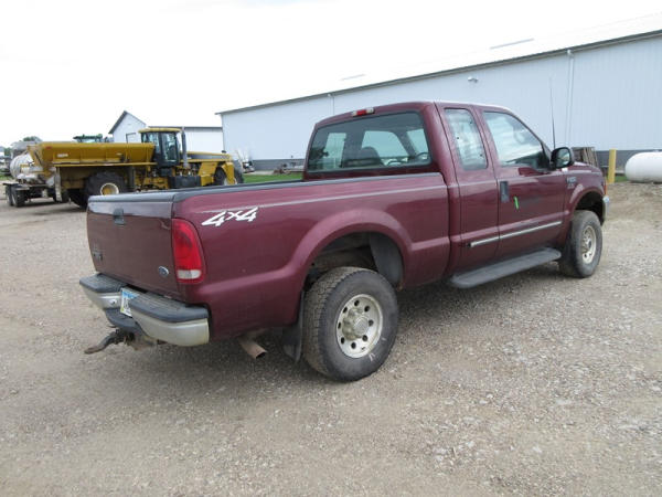 2000 Ford F250 Extended Cab Pickup (PZ2658, Unit 34149), 4x4, Triton V10 gas engine, automatic transmission, air conditioning, heat, Am/Fm CD stereo, cruise control power windows & locks, running boards, heavy duty hitch, LT265/75R16 tires, shows 134,289 miles.