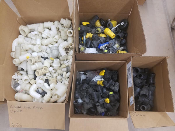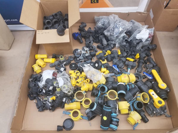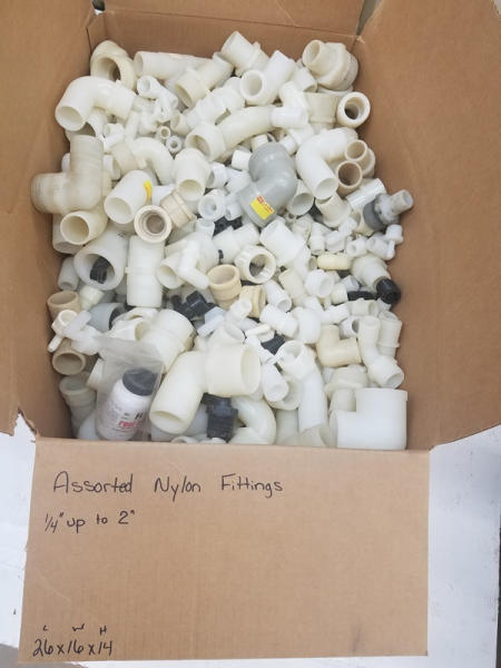 Nylon & Poly Fittings (PZ2677), Misc Nylon & Poly fittings, Nylon 1/4" up to 2" 52# worth, Poly fittings 63# worth.