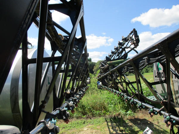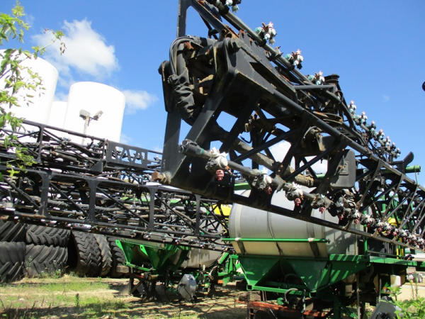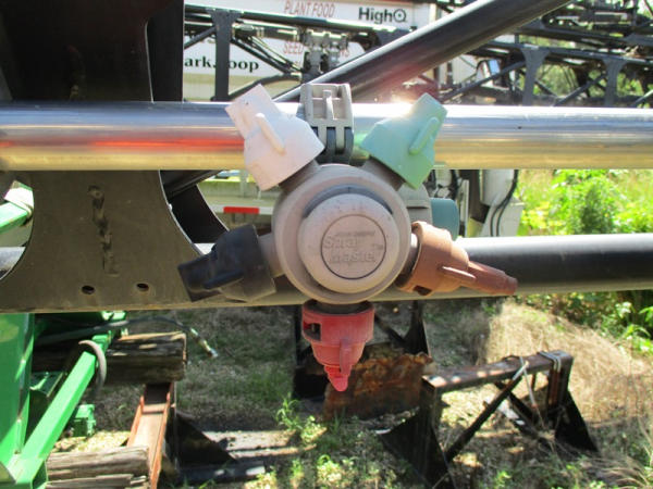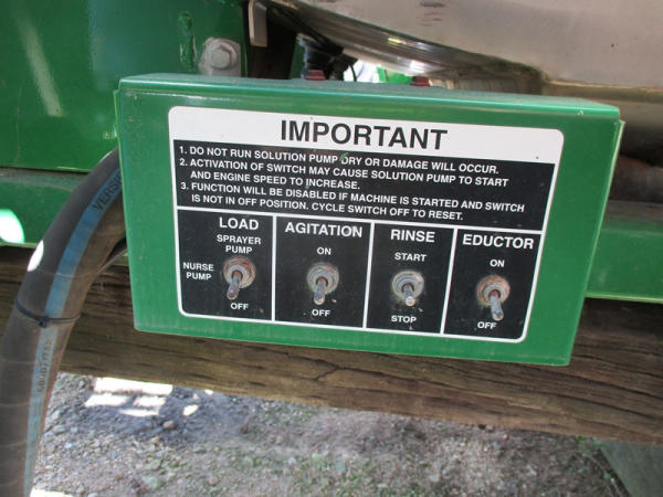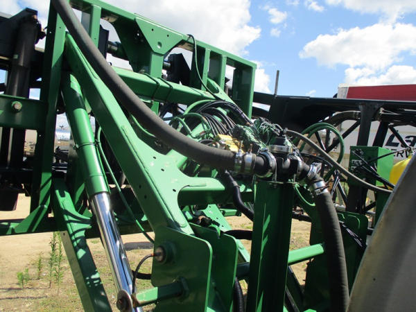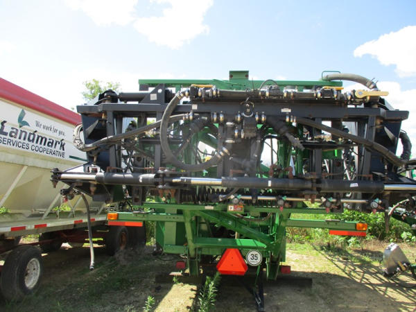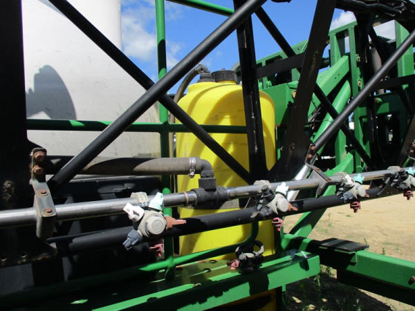 John Deere Liquid System (DR2903), 1200 gallon stainless steel liquid tank, 120' boom, 5 way nozzle bodies, stainless steel chemical inductor, washer hose reel, poly foam marker tank, came off 4940 John Deere.