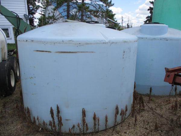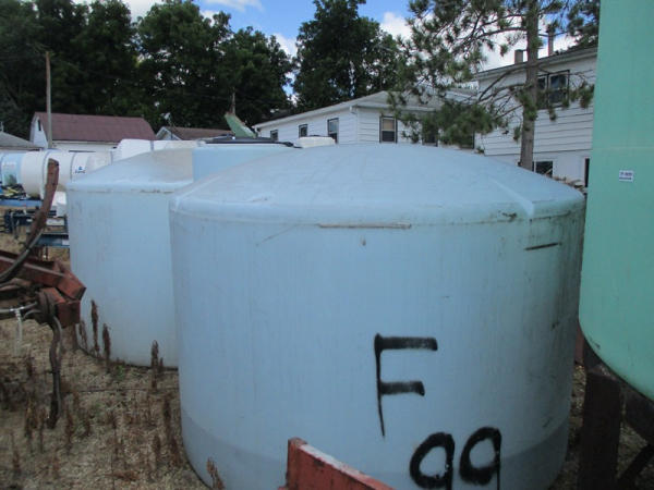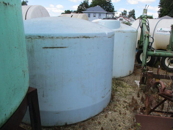 Poly Tanks (DR2921), (2) 1550 gallon poly flat bottom liquid tanks, one has a dented top.