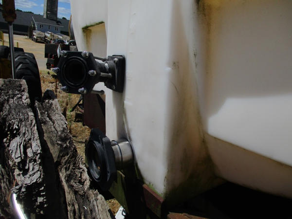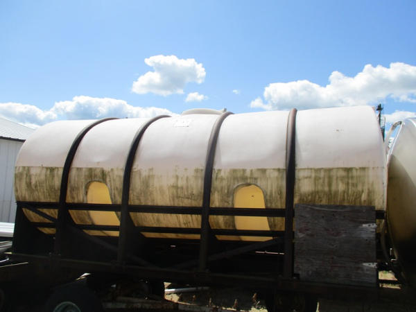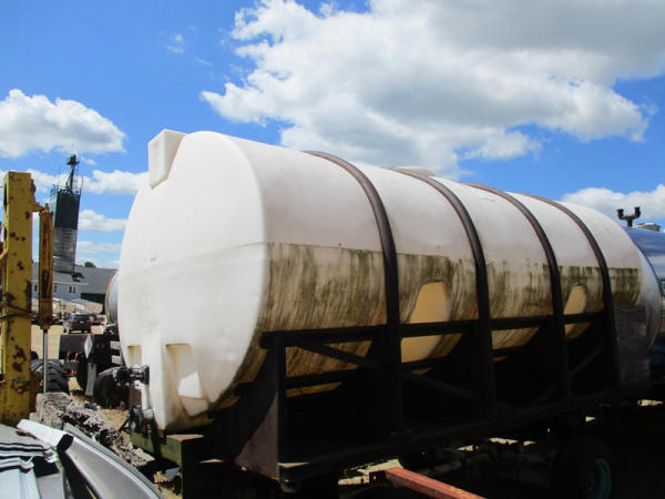 Crown Poly Tank (DR2923), 3200 gallon crown poly tank, side baffles, truck frame mount, 3" outlet, rear storage platform, gas engine, 2" pump.